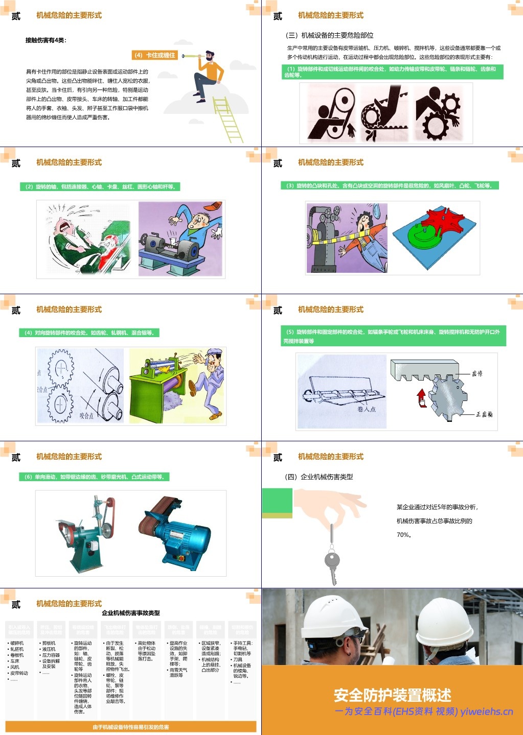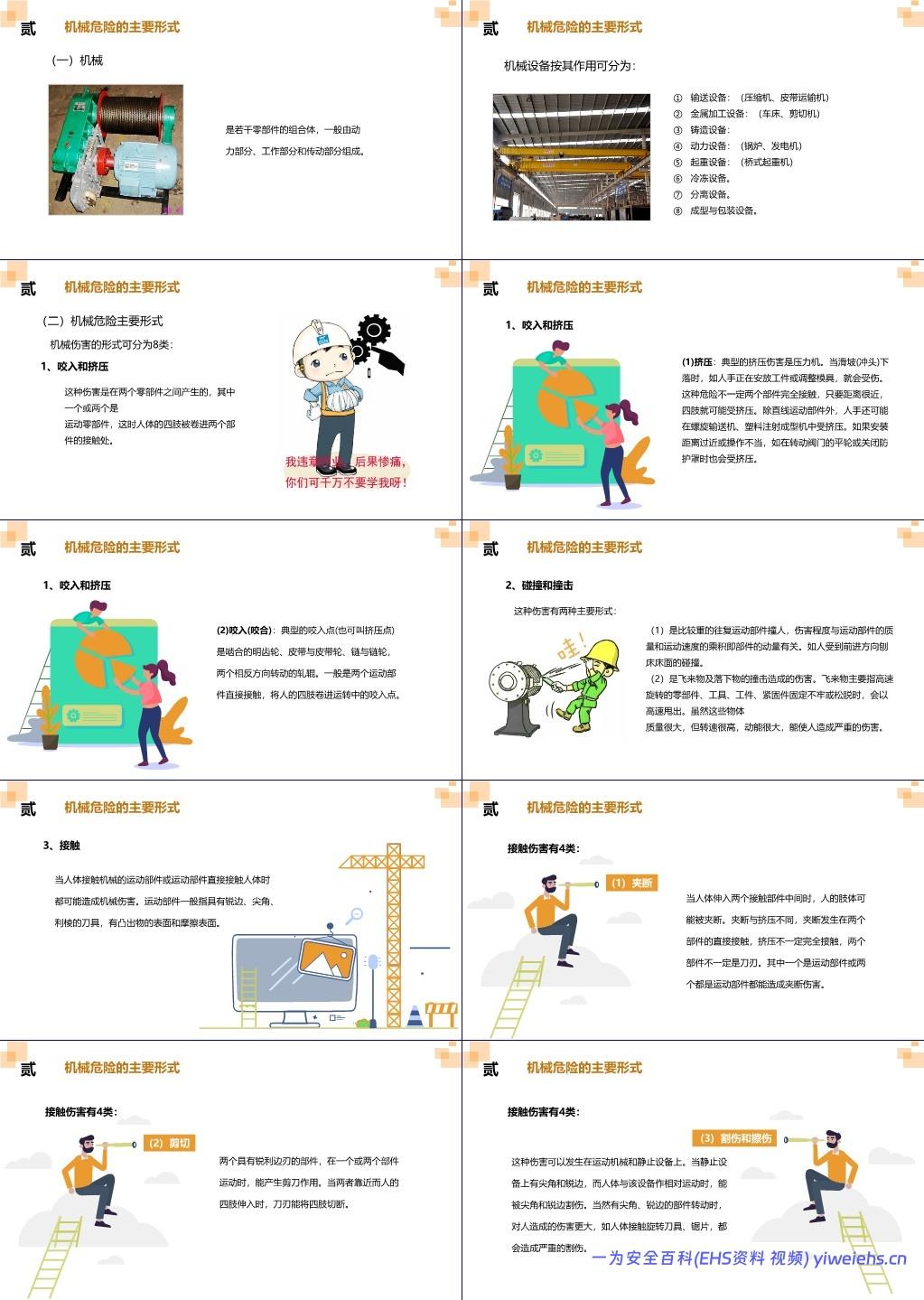 将机械伤害归纳为8类,重点包括: