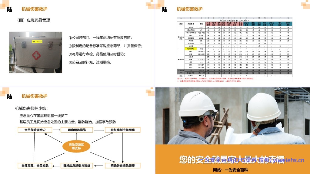 要求基层班组具备应急能力,定期演练,配备药箱