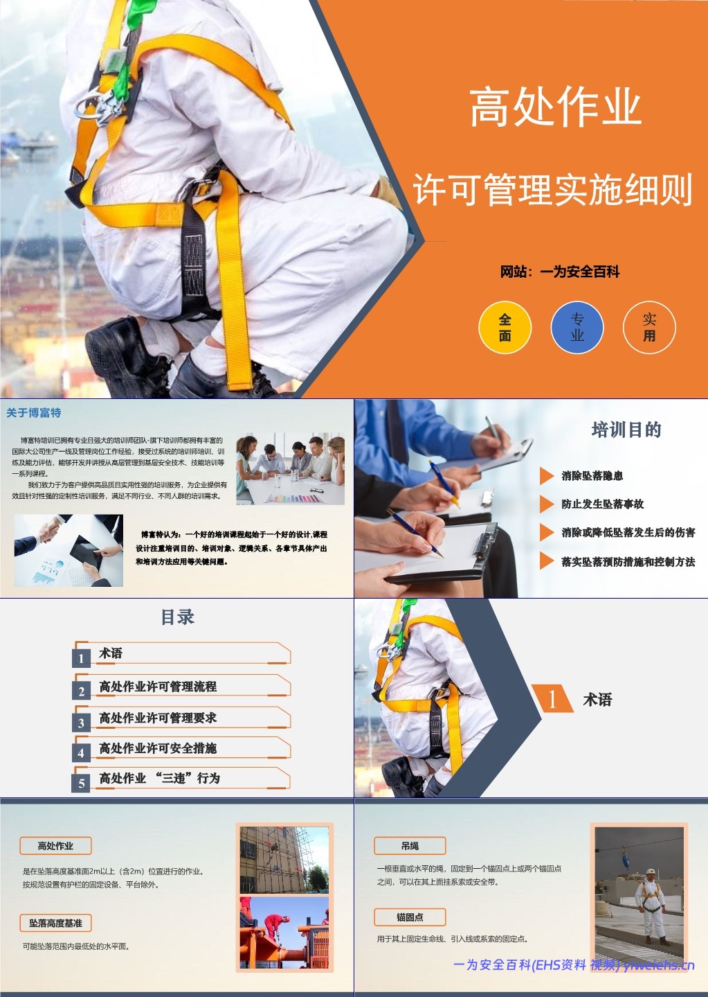 【PPT】高处作业许可管理实施细则课件内容介绍: