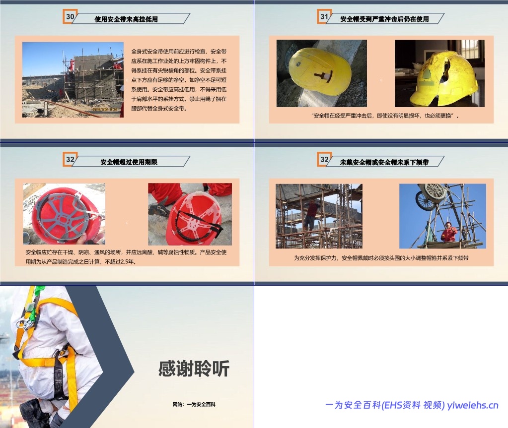 安全帽未系带或超期使用等。