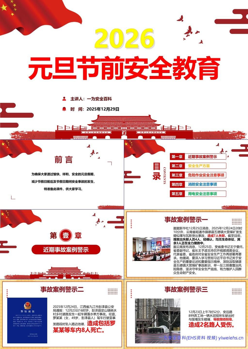 【PPT】2026元旦节前安全教育培训(含事故案例)内容介绍: