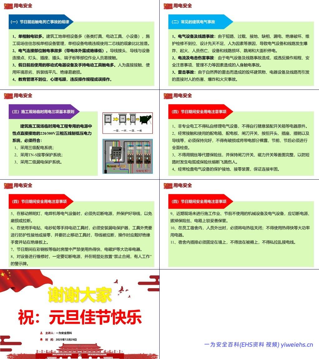 关键词:元旦安全培训, 节前安全教育, 事故案例警示, 消防安全知识, 临时用电安全