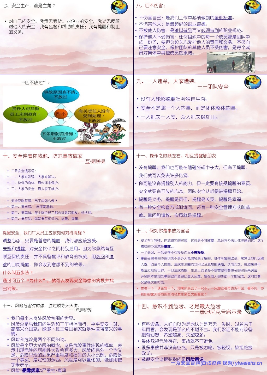 倡导“互保联保”、“团队安全”、“岗位危害我识别,我的安全我负责”等理念;