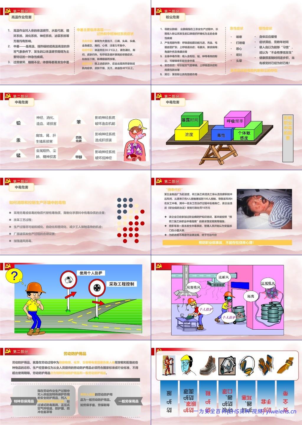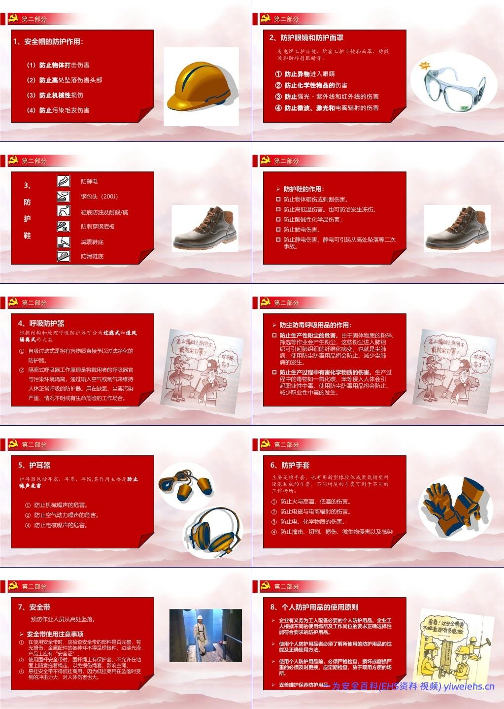 职业健康与劳动防护:涵盖噪声、高温、粉尘、中毒等危害及防护用品(安全帽、呼吸器、耳塞、防护服等);