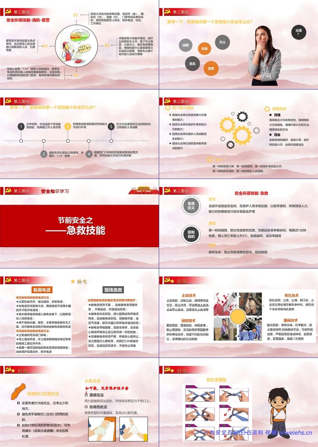 急救技能:包括触电、创伤、烧烫伤、煤气中毒、电梯被困等应急处置;