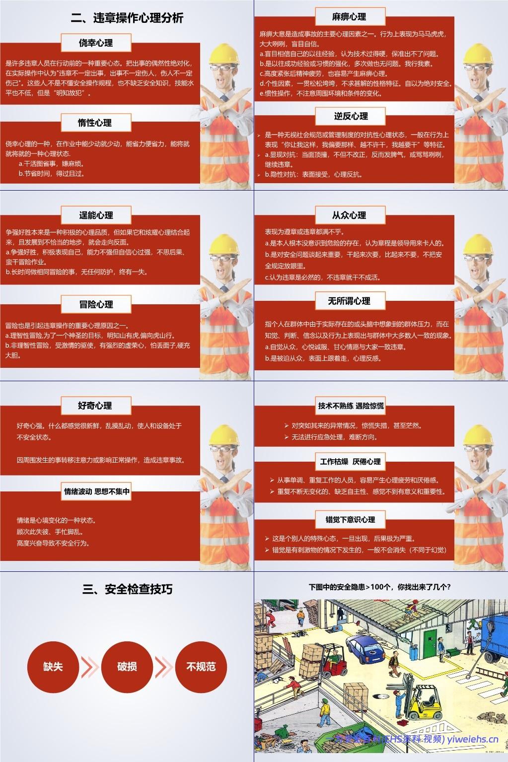 列举九种常见违章心理:侥幸、惰性、麻痹、逆反、逞能、冒险、从众、无所谓、好奇,并分析其成因与表现。