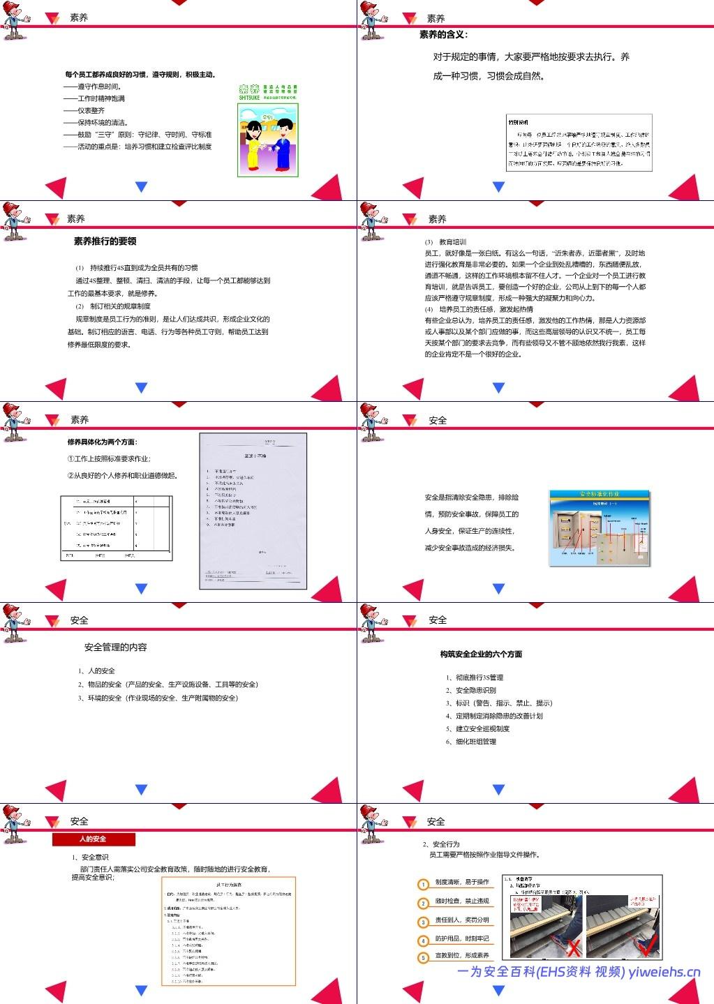 三大维度:人的安全(意识+行为)、物品安全(产品+设备)、环境安全(危险源识别);
