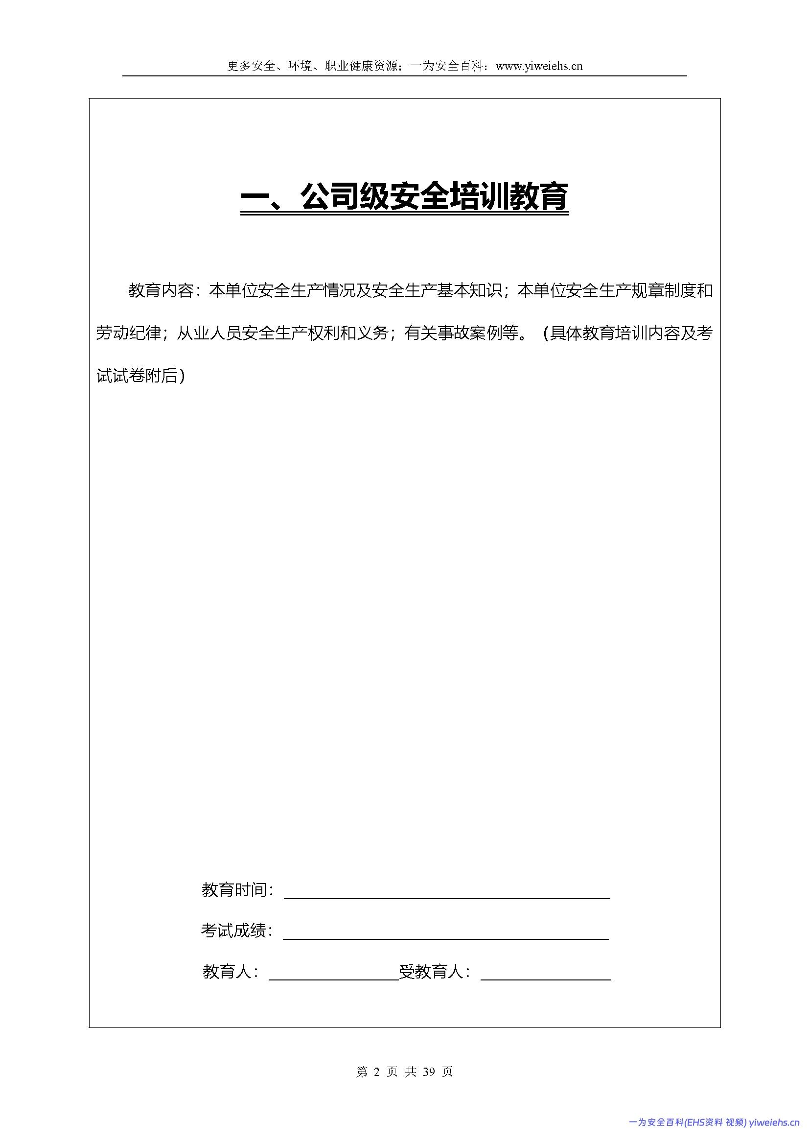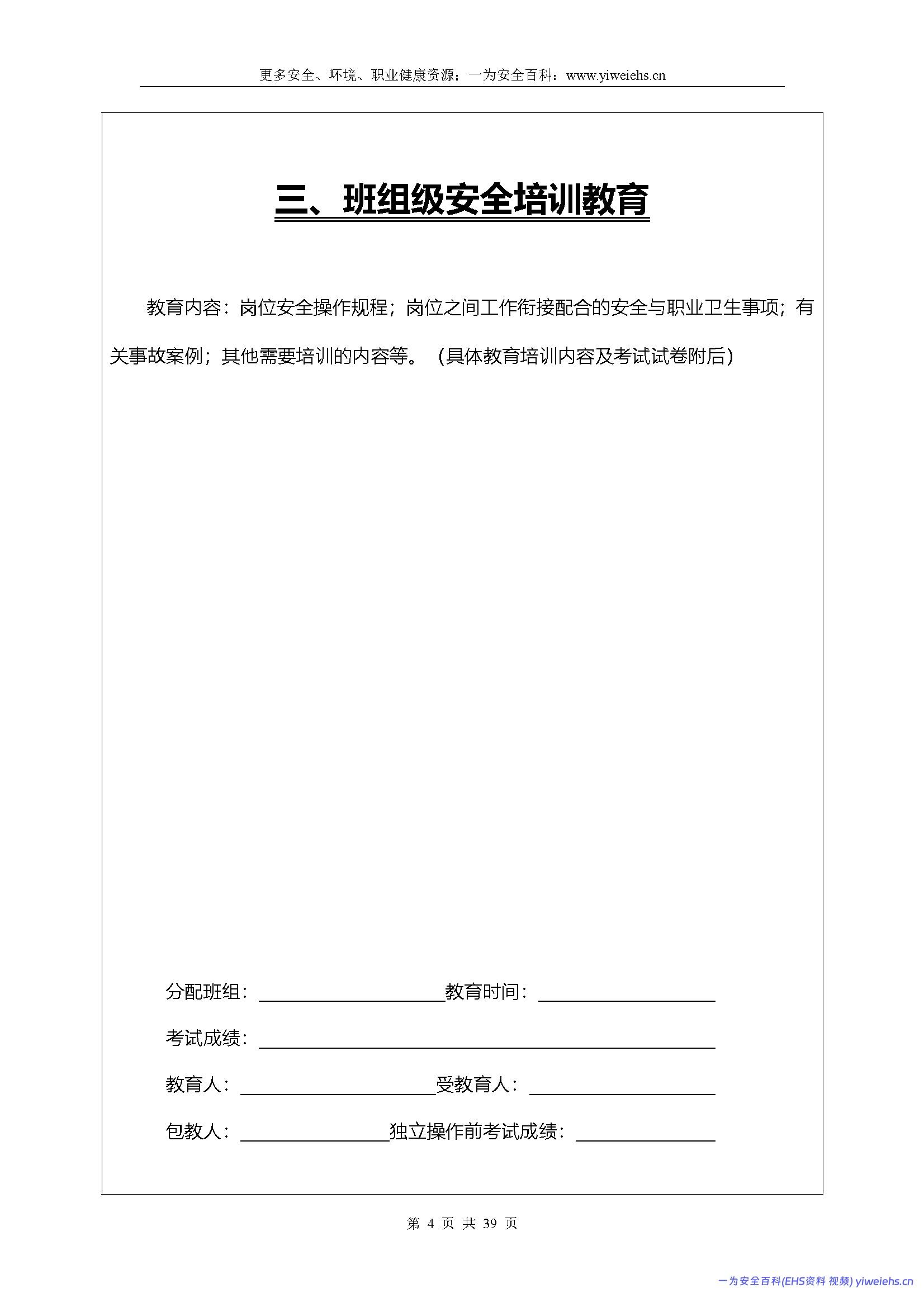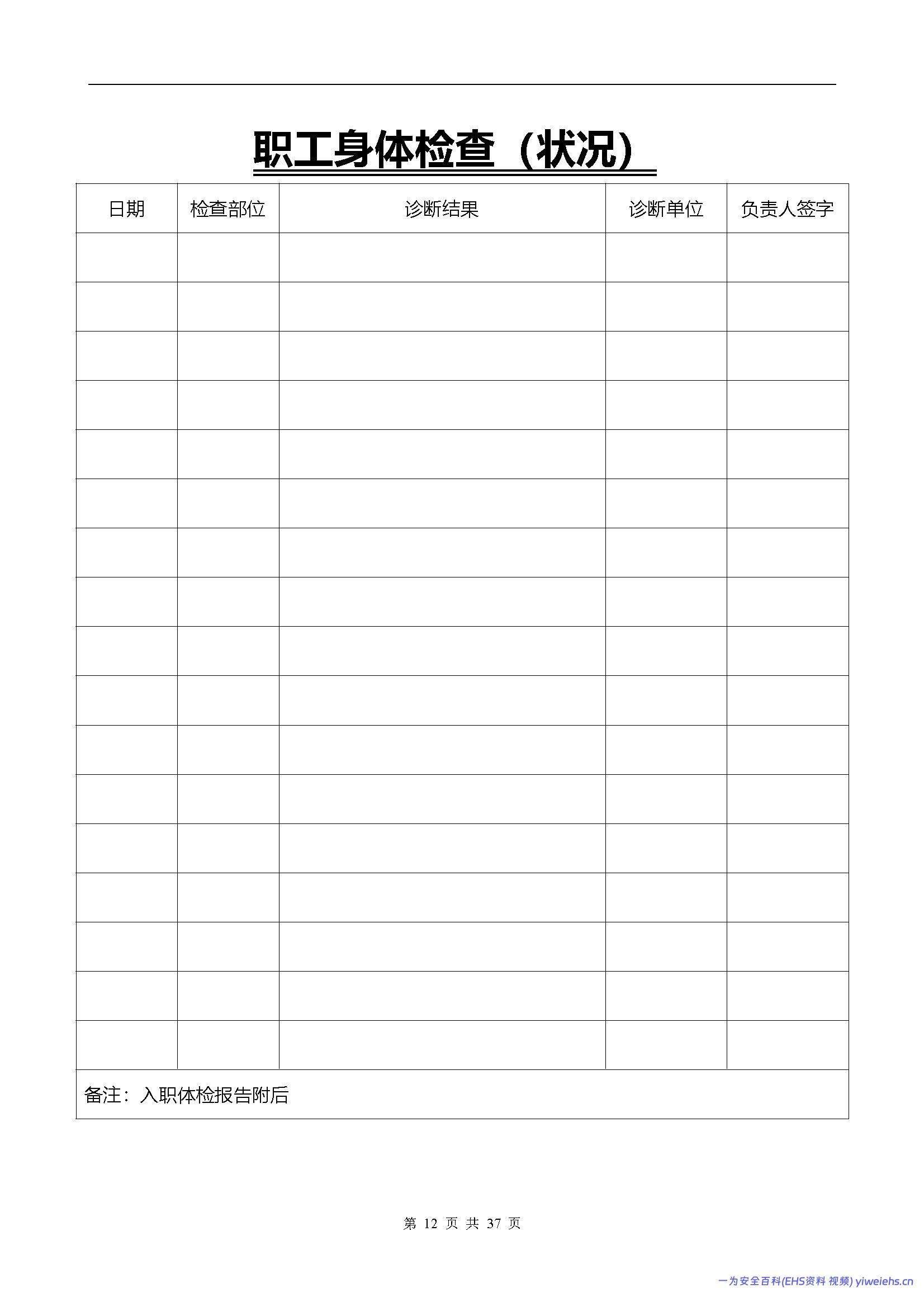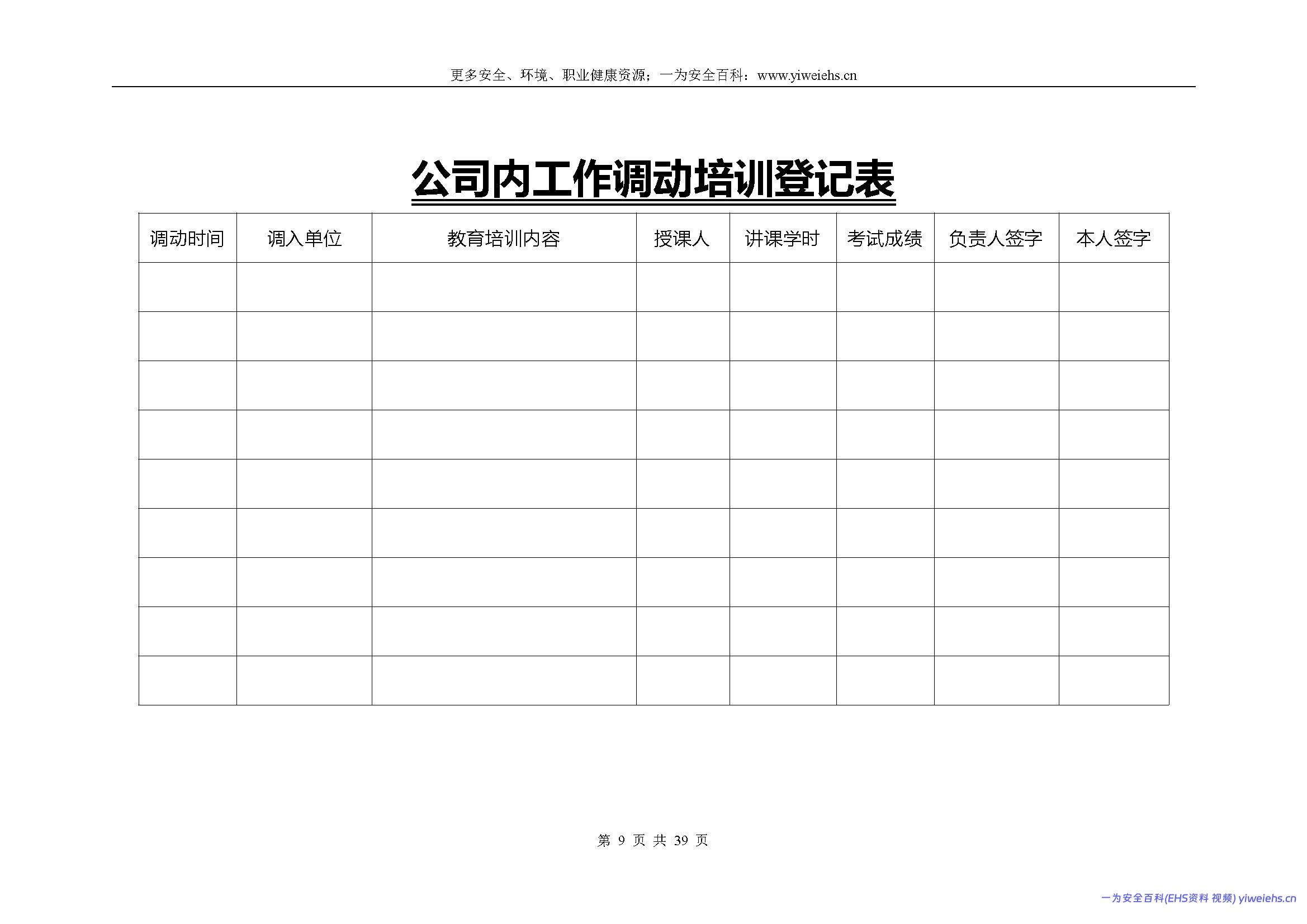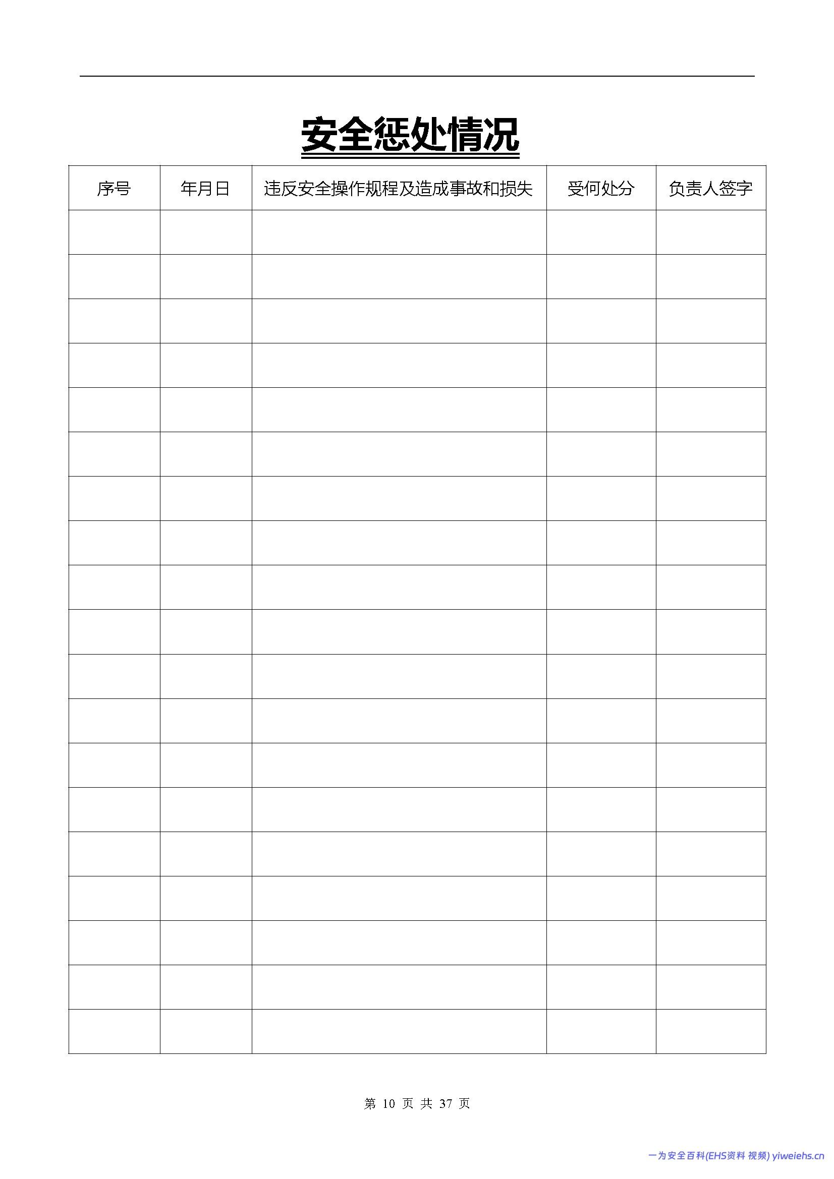 附加管理表格:包括公司内工作调动培训登记表、安全奖惩记录、职工体检记录等,形成完整的个人安全档案闭环。