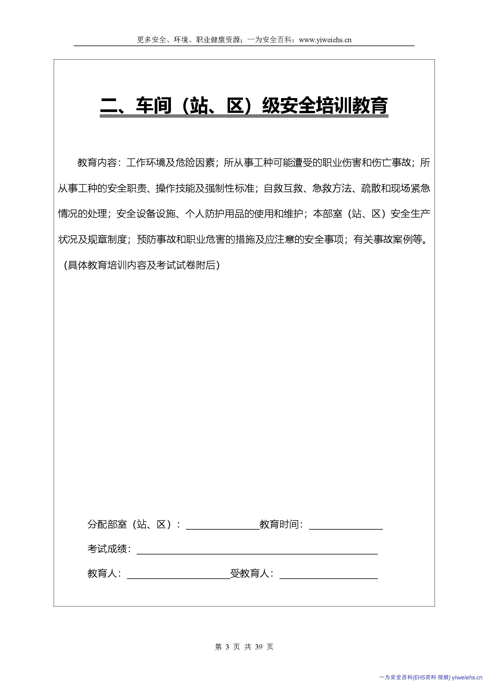 车间(站、区)级教育:聚焦工作环境危险因素、职业伤害、岗位安全职责、应急处理、防护用品使用、部门安全制度等内容。