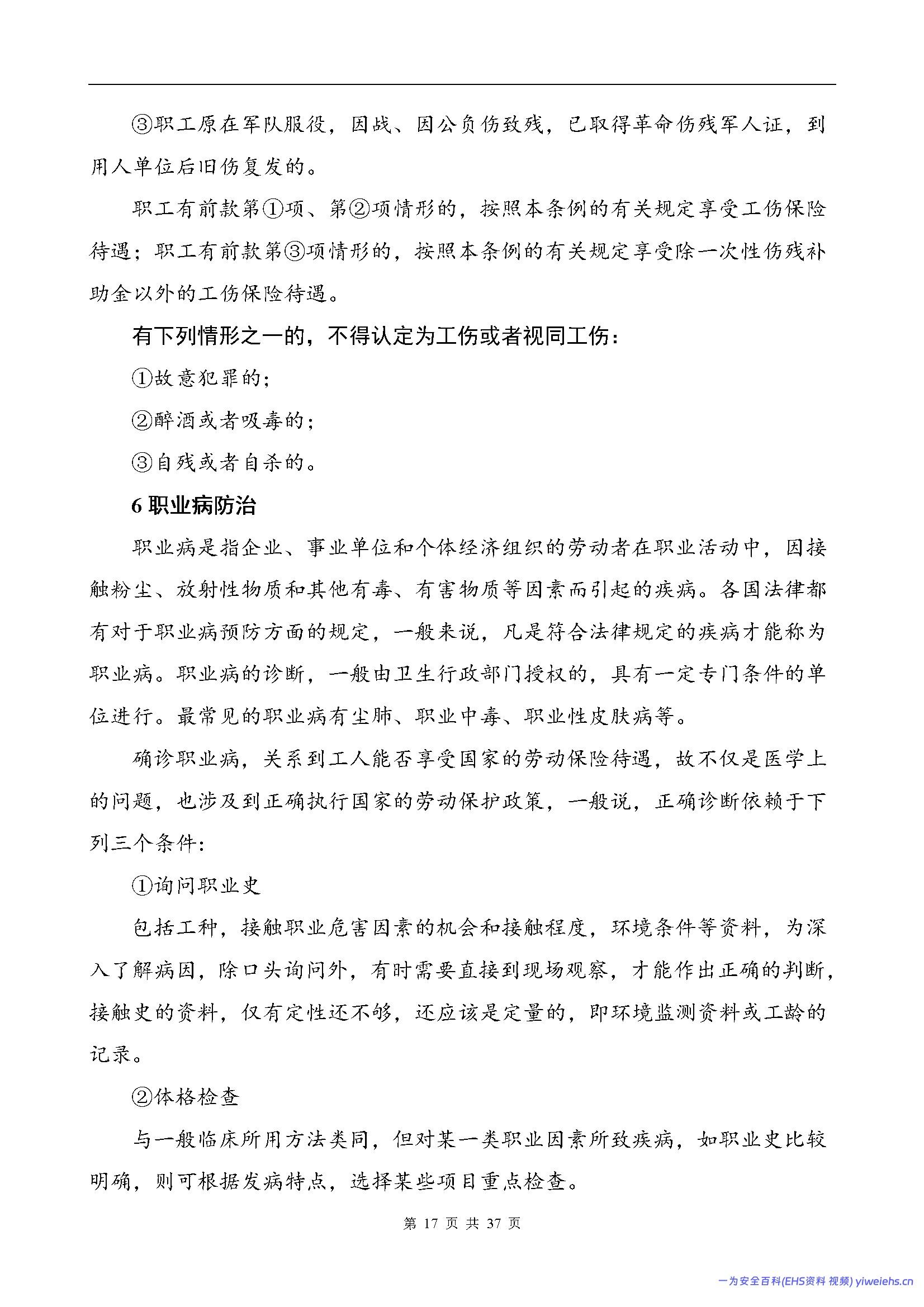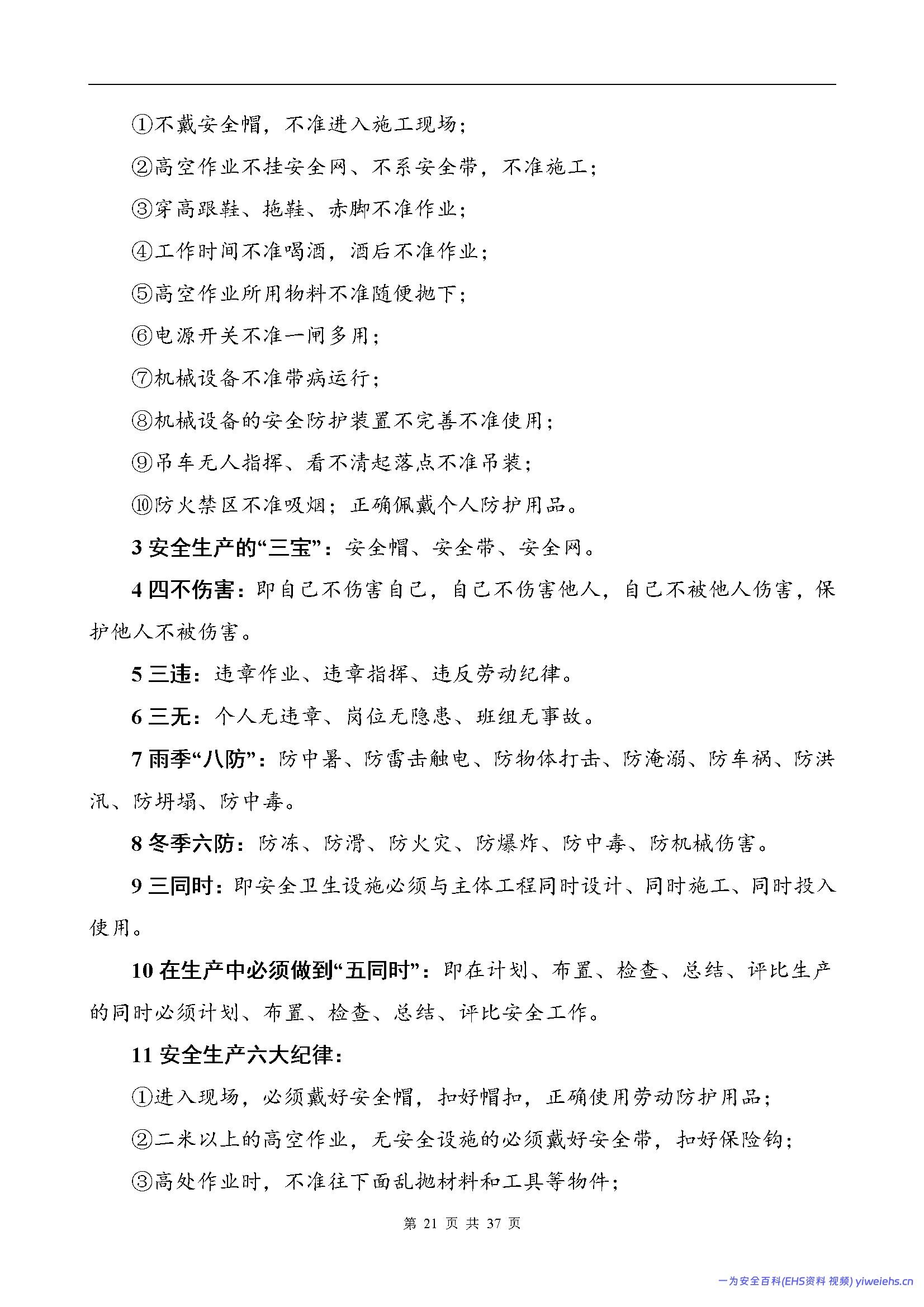 法律法规篇:列举相关法律(如《安全生产法》《职业病防治法》)、员工八大权利与四项义务、工伤认定标准、特殊工种范围等。