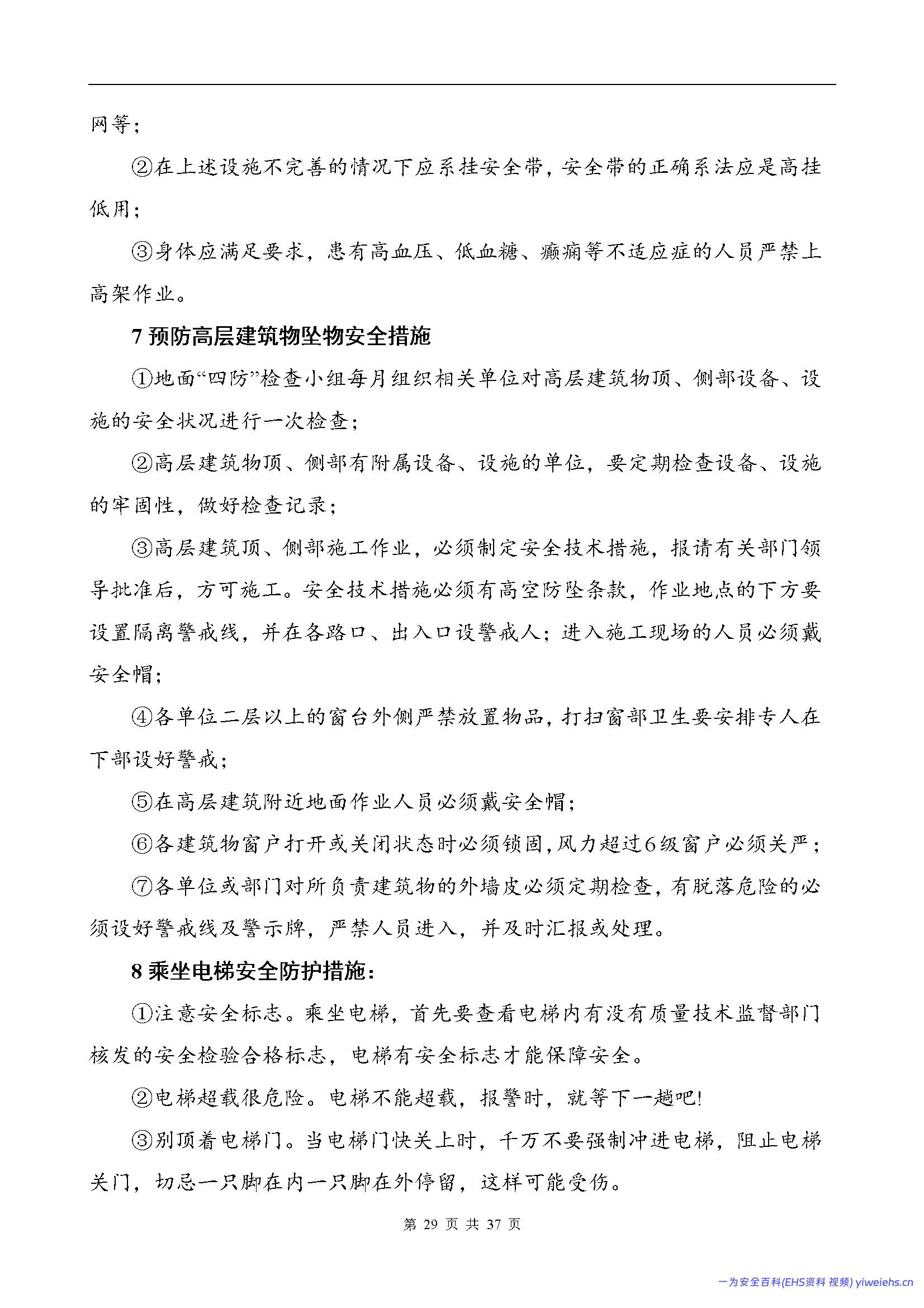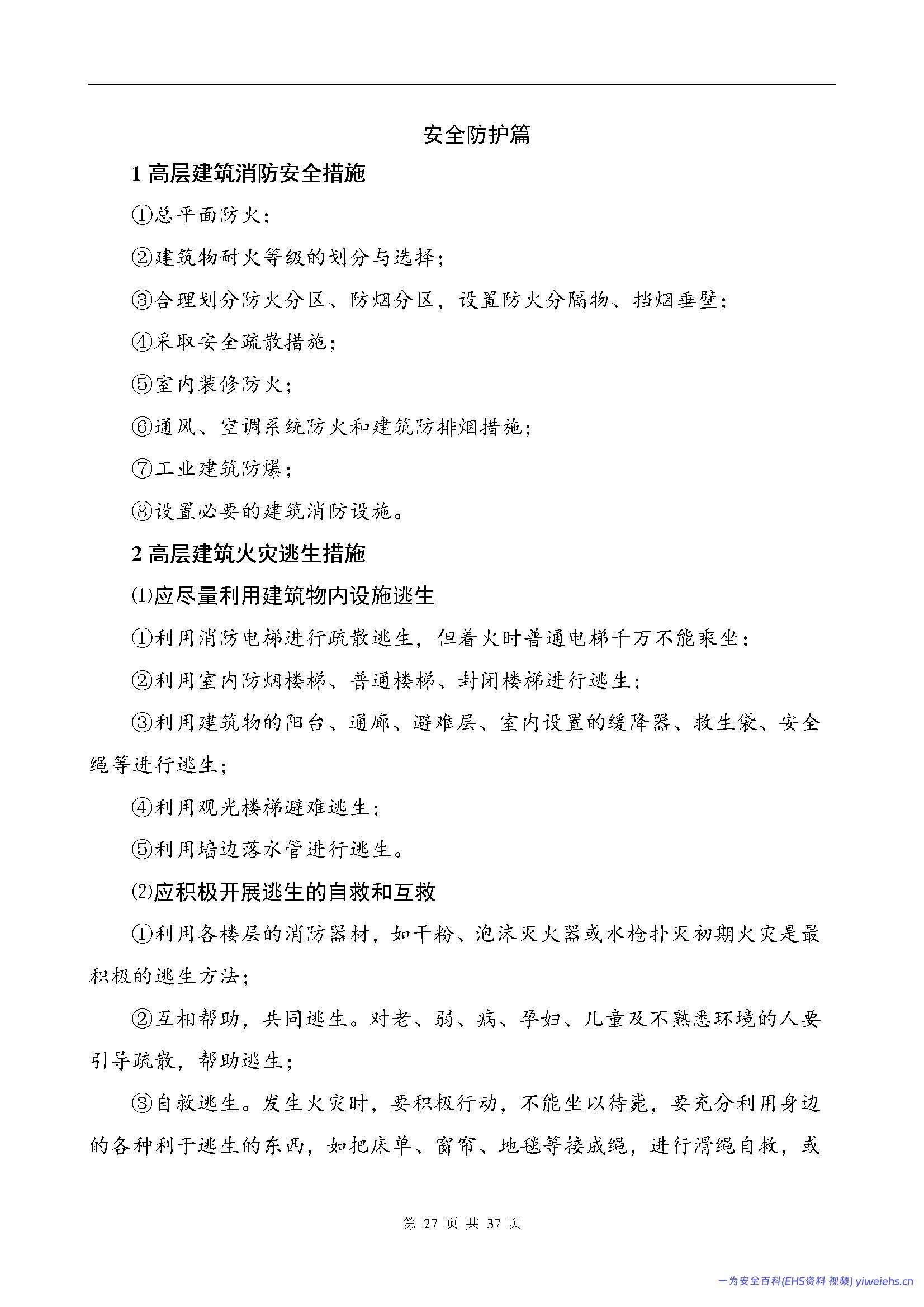 安全防护篇:针对高处作业、用电、车辆、物体打击、电梯使用等场景提供具体防护与应对措施。