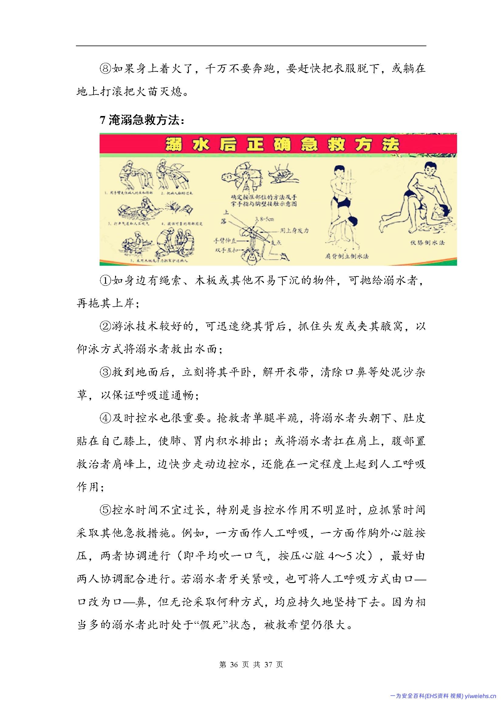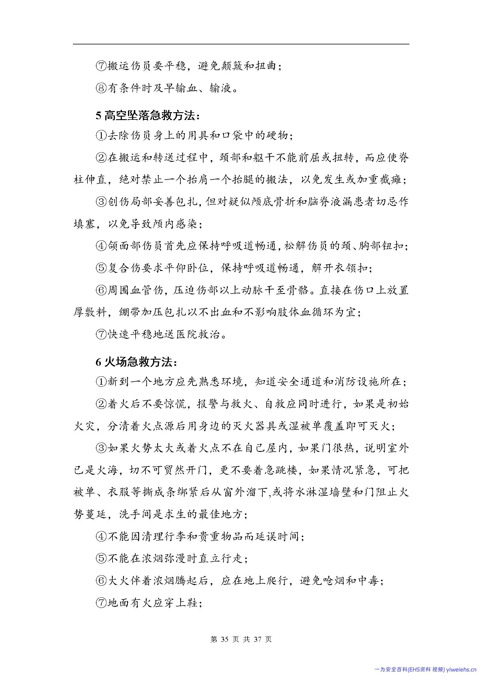 应急救援篇:详述触电、中暑、砸伤、高空坠落、火灾、淹溺、电梯故障等常见事故的现场急救与应急处置方法。