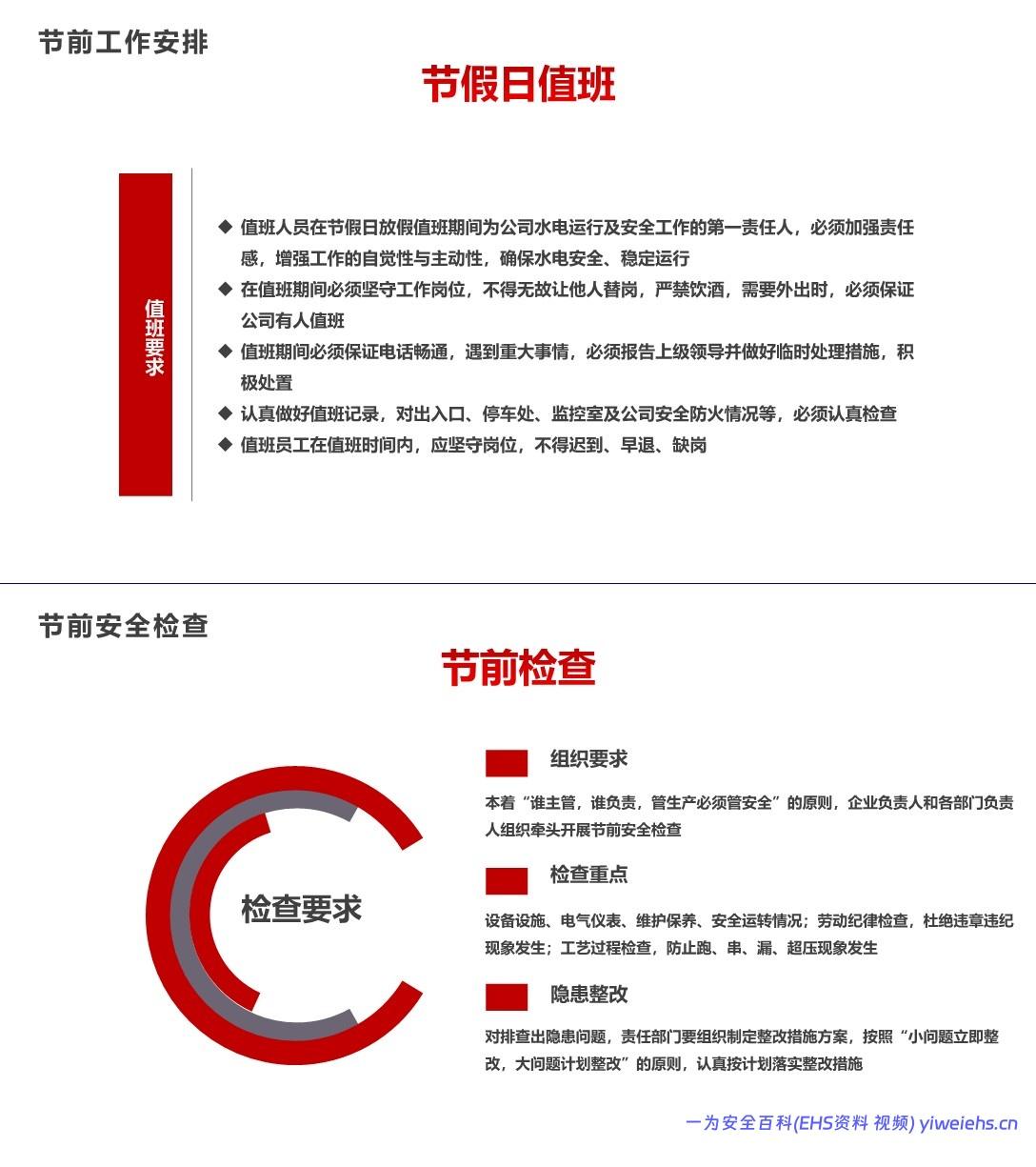 明确节前工作安排:开展全员安全培训、排查隐患、做好人员流动摸底、安排值班。