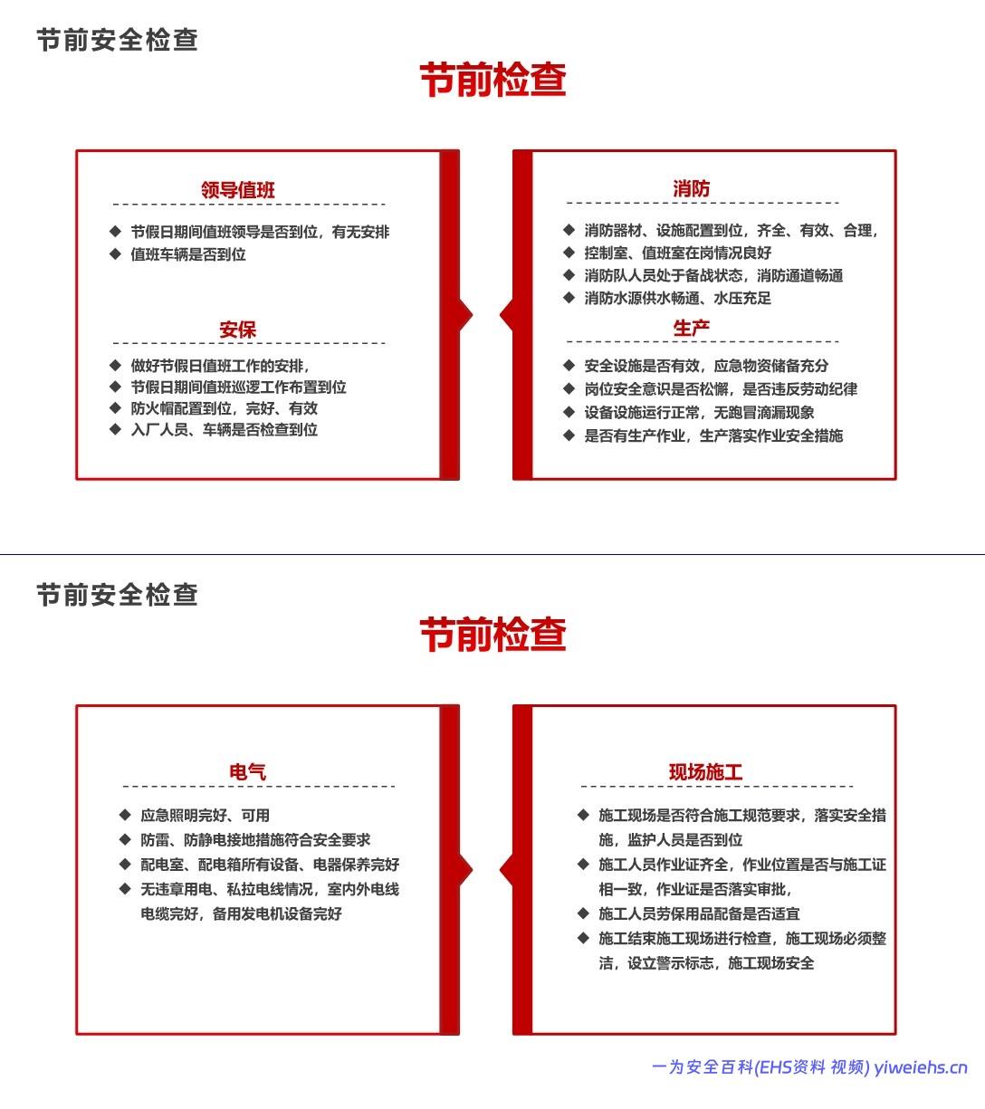 节前安全检查要求: