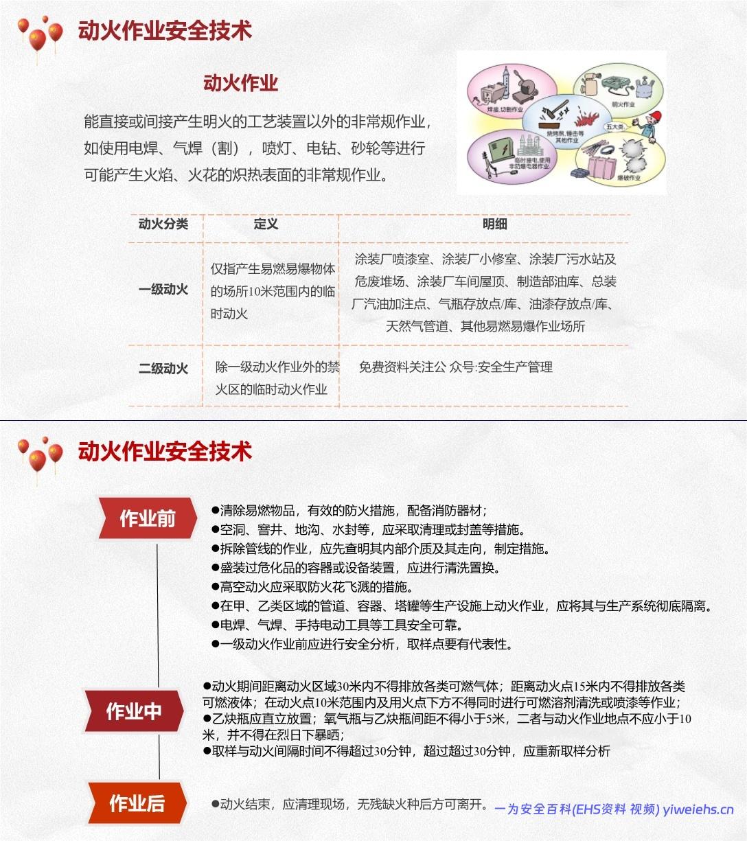 各类作业有详细安全技术规范(如动火间距、高处防护、受限空间通风与检测等)。