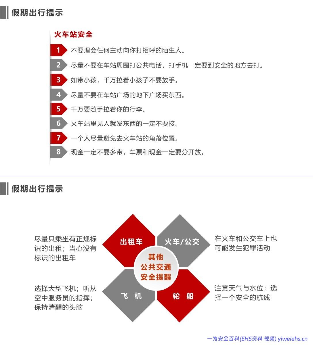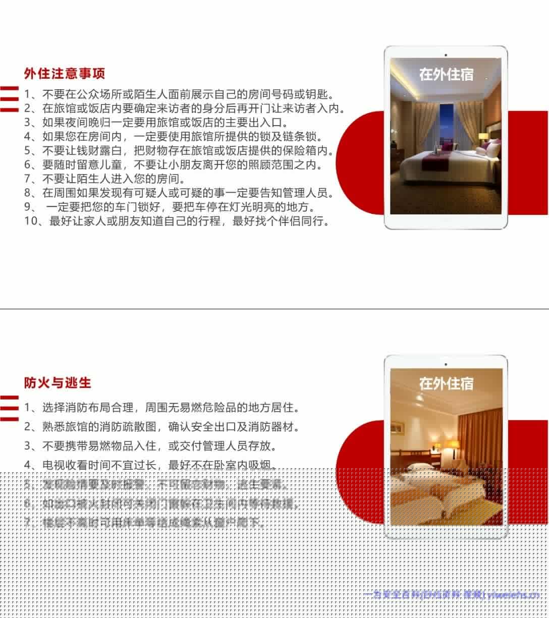 火车站防骗防盗、住宿选正规酒店、注意交通安全(不酒驾、不闯红灯、不超载)。