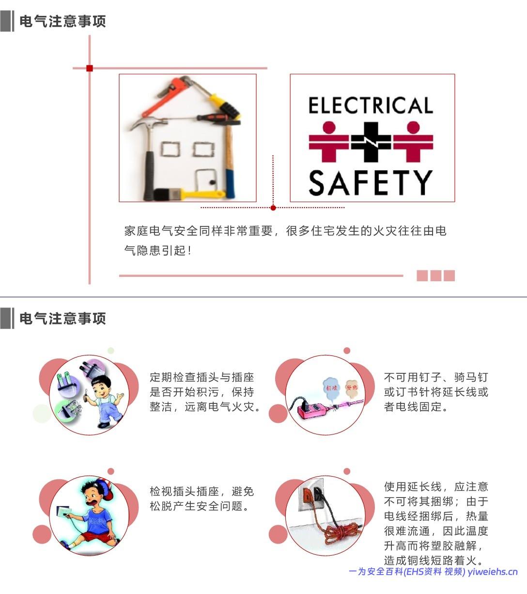 电气安全:不私拉电线、不用破损插线板、远离易燃物。