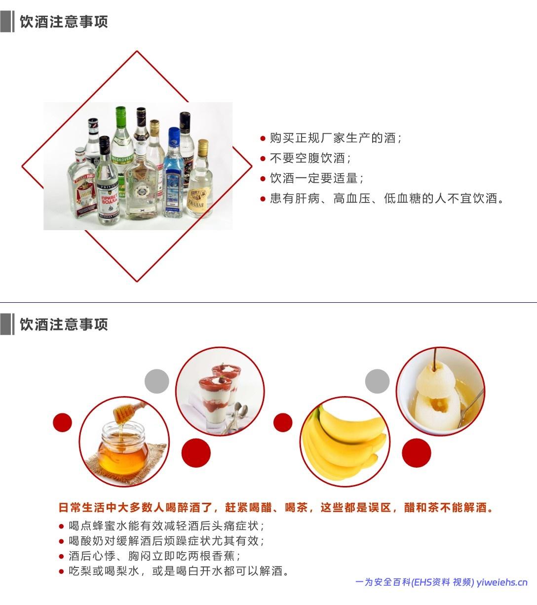 饮酒安全:适量饮酒、不空腹饮、肝病/高血压者忌酒;解酒推荐蜂蜜水、香蕉、梨,而非醋或茶。