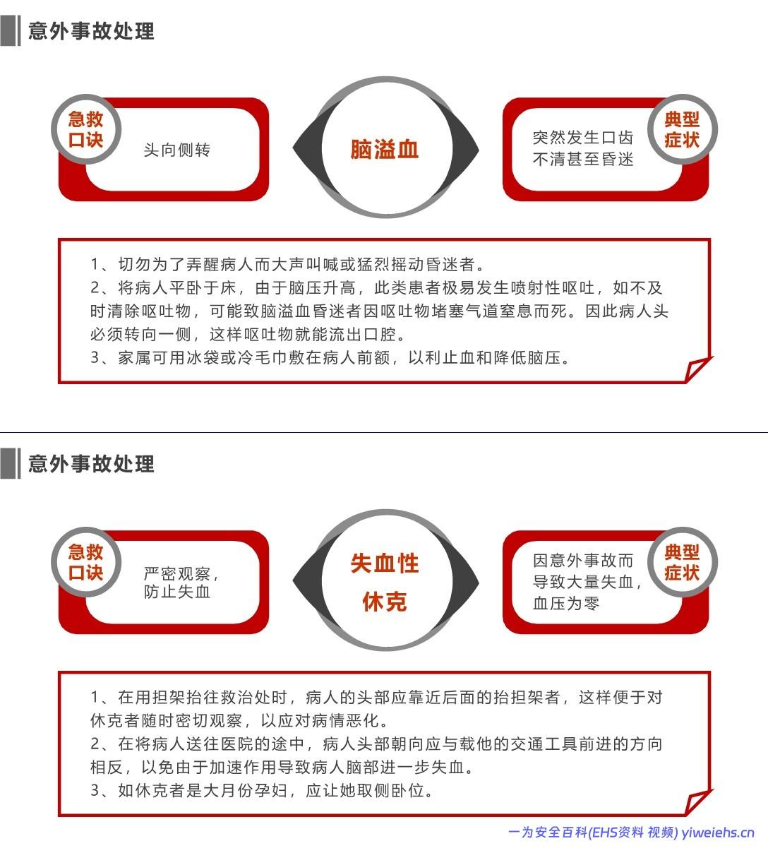 脑溢血:头侧转防窒息、冷敷降颅压、勿摇晃患者。