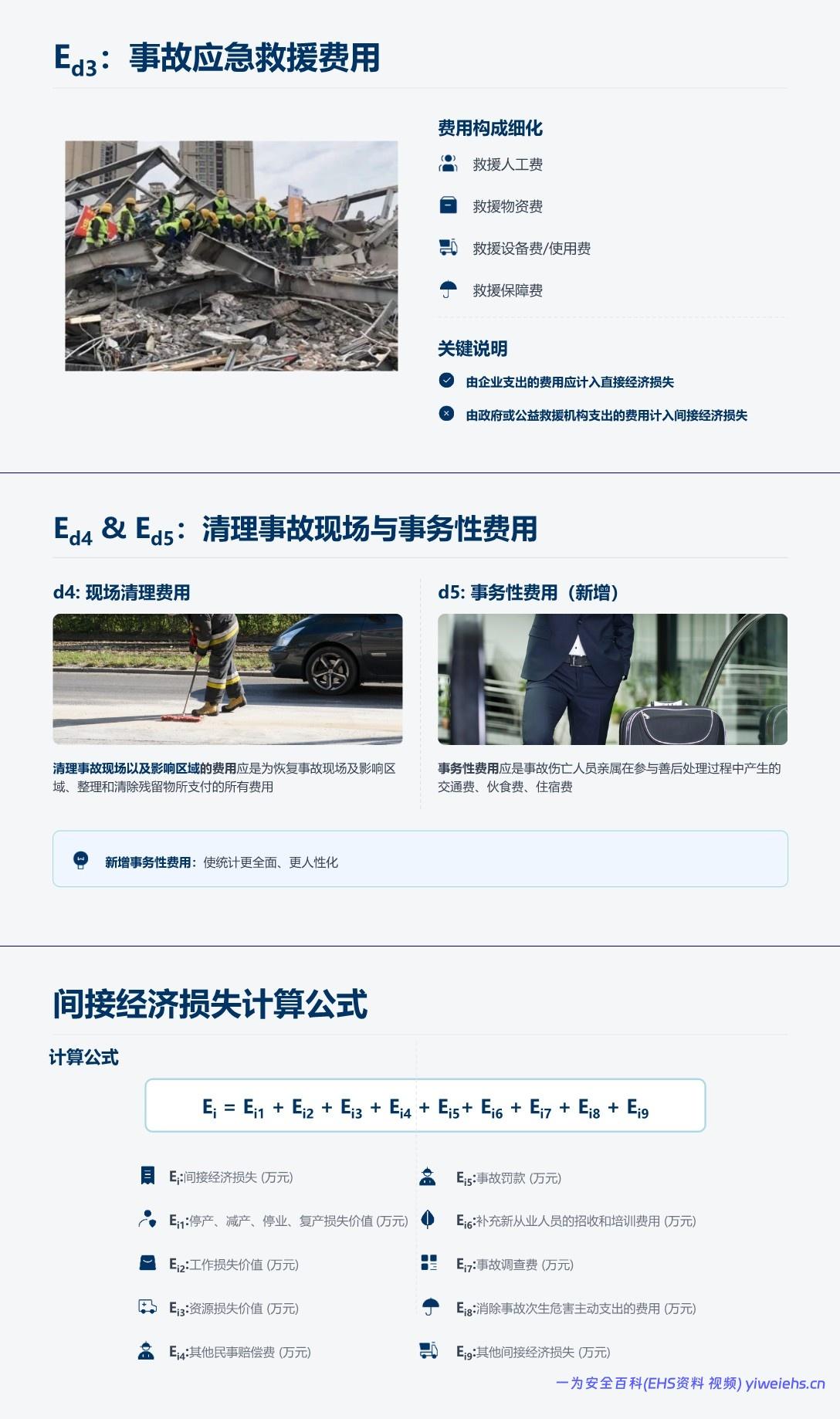 - Ed3(应急救援费):仅计入企业支出部分;政府或公益机构支出计入间接损失。