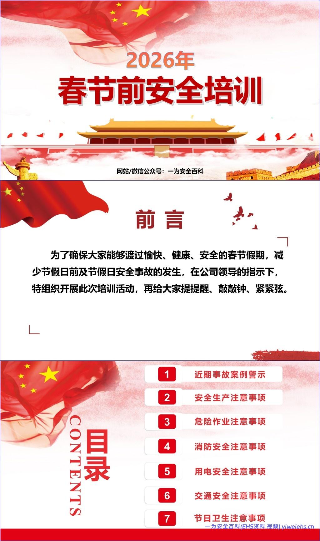 【PPT】2026年度春节前安全培训(含近期事故案例)课件内容介绍: