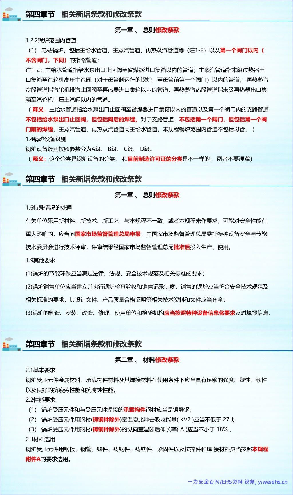 总则:明确了适用范围(蒸汽、热水、有机热载体锅炉)、锅炉本体及范围内管道的定义、设备级别划分,并规定了采用新材料/工艺的申报流程。