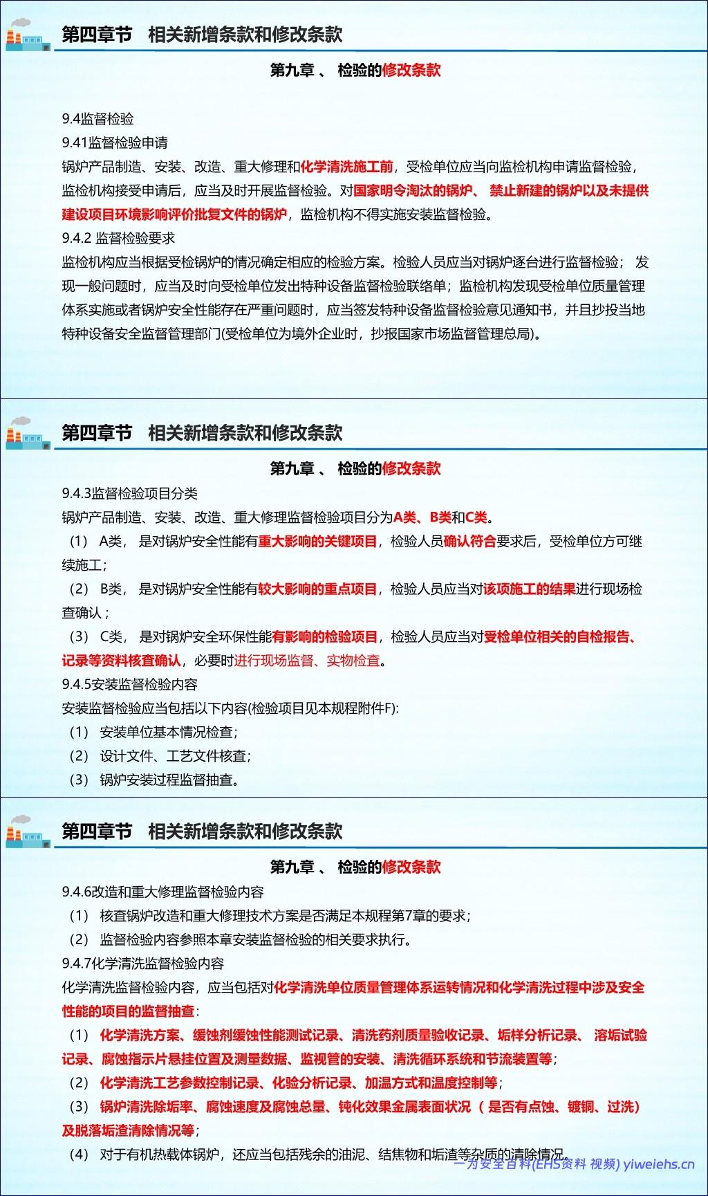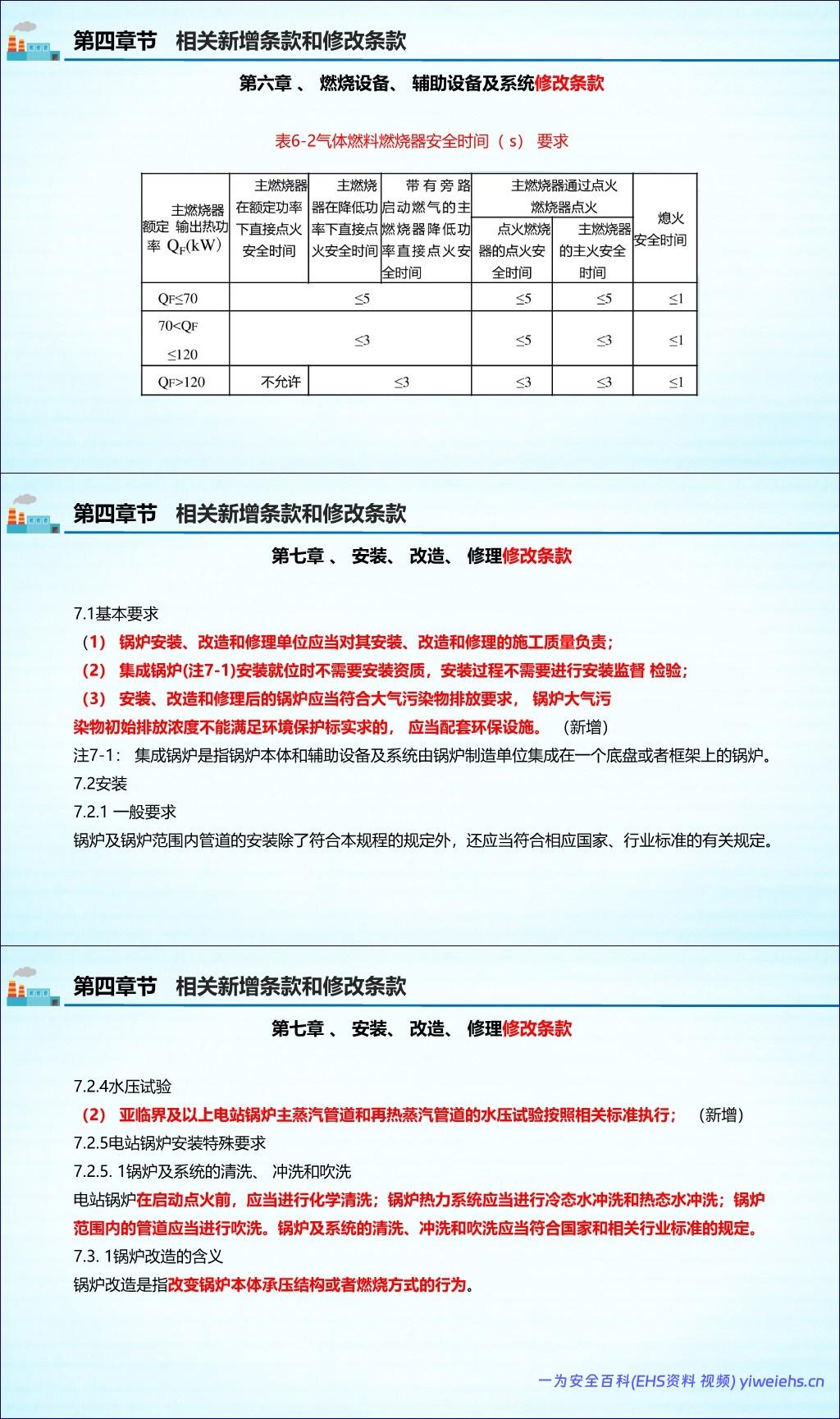 制造、安装、改造、修理:规定了各环节单位的责任,并新增了对电站锅炉范围内管道元件、燃烧器更换等的监督检验要求。