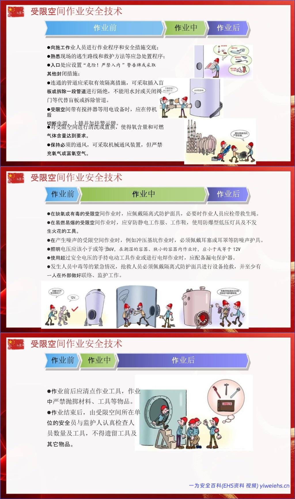 受限空间作业:必须隔离、通风、检测气体,佩戴防护面具,严禁盲目施救。