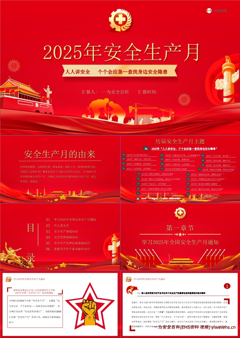 【PPT】2025年安全生产月主题培训课件内容介绍: