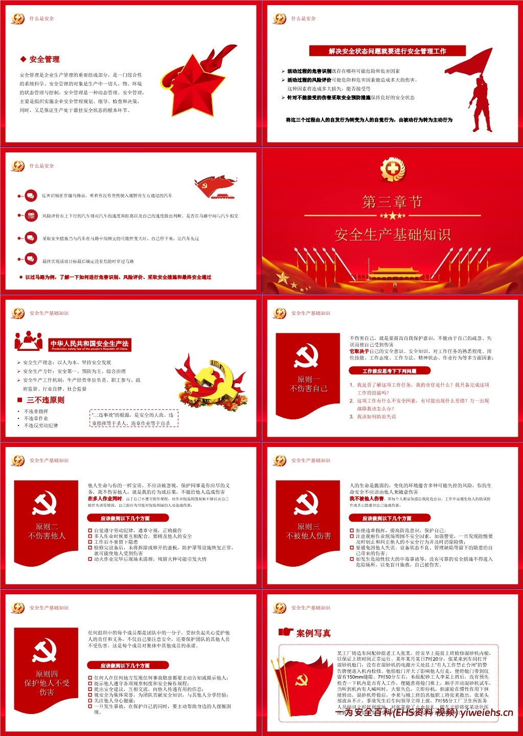 核心原则:“管生产必须管安全、谁主管谁负责”“三同时”(安全设施与主体工程同时设计、施工、使用)“四全管理”(全员、全过程、全方位、全天候)“3E”(安全技术、教育、管理)等;“安全三宝” 为安全帽、安全带、安全鞋;“三违” 即违章作业、指挥、违反劳动纪律。