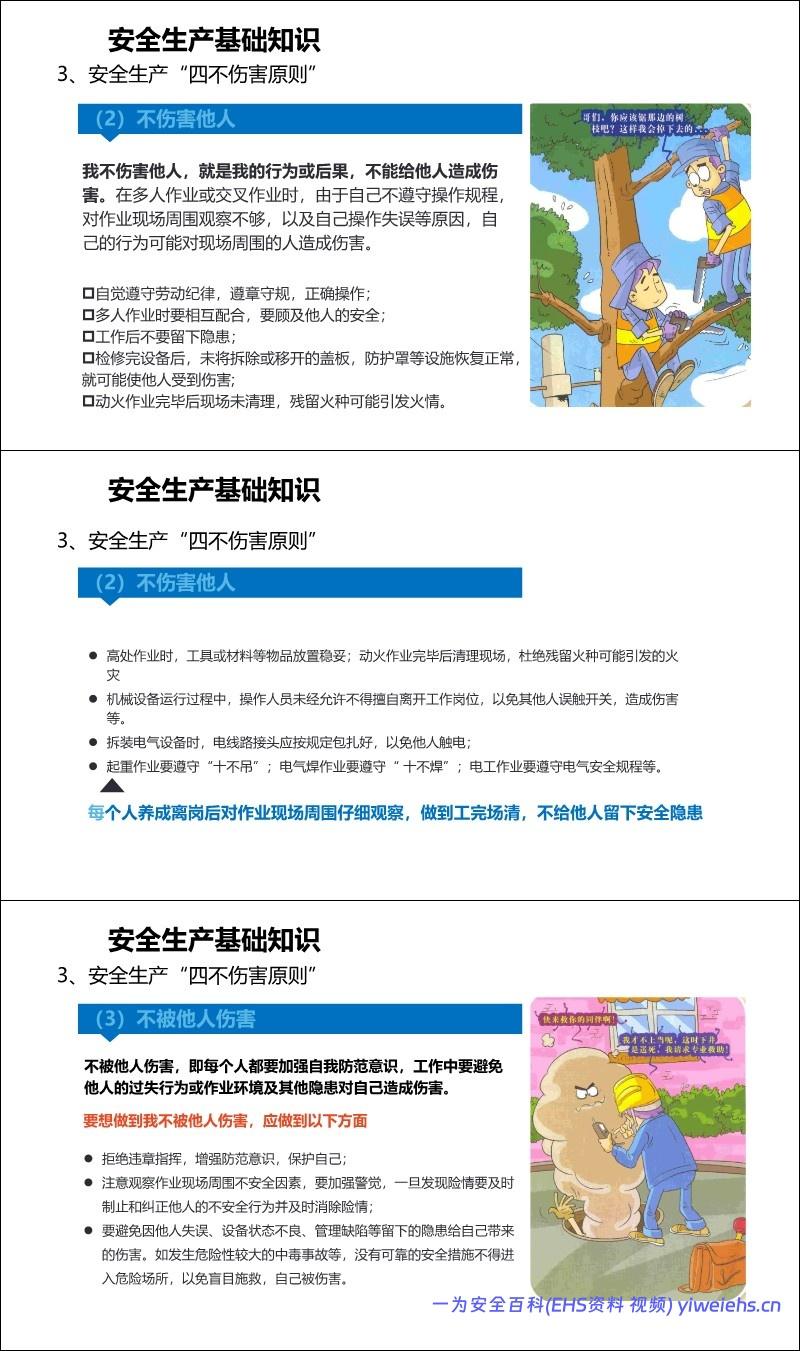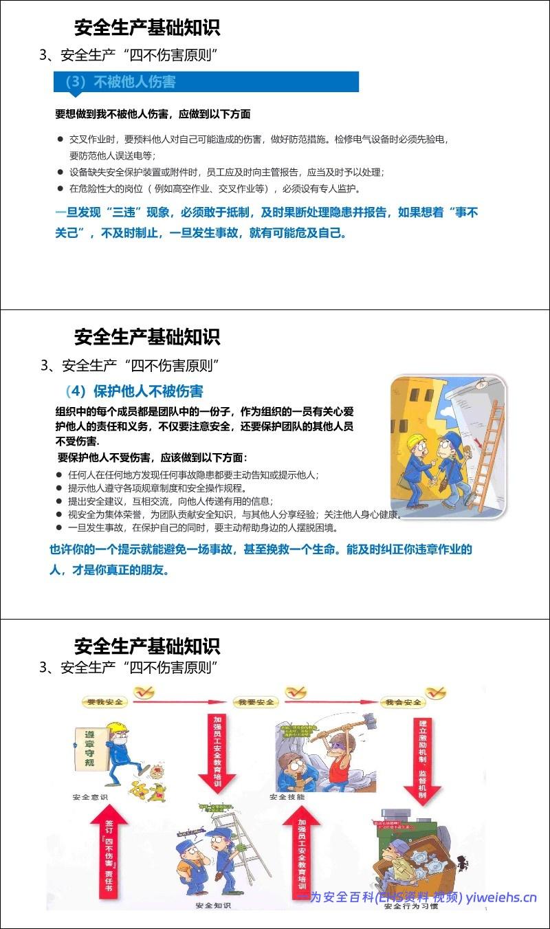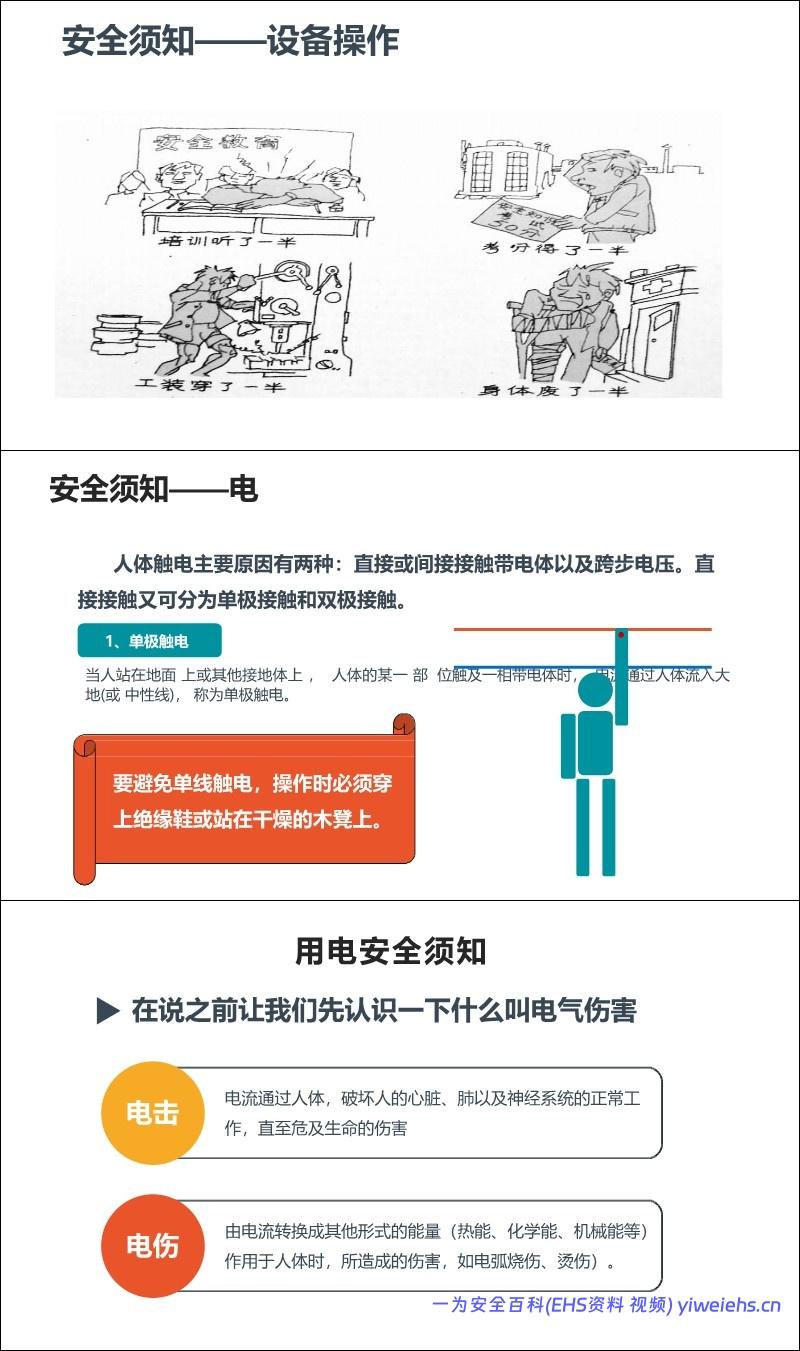 基础须知: 包括虚心学习技能、遵守“安全三原则”(整理整顿、维护保养、标准操作)、接受三级安全教育、严格遵守“五严禁”(如禁火区吸烟、酒后上岗等)。