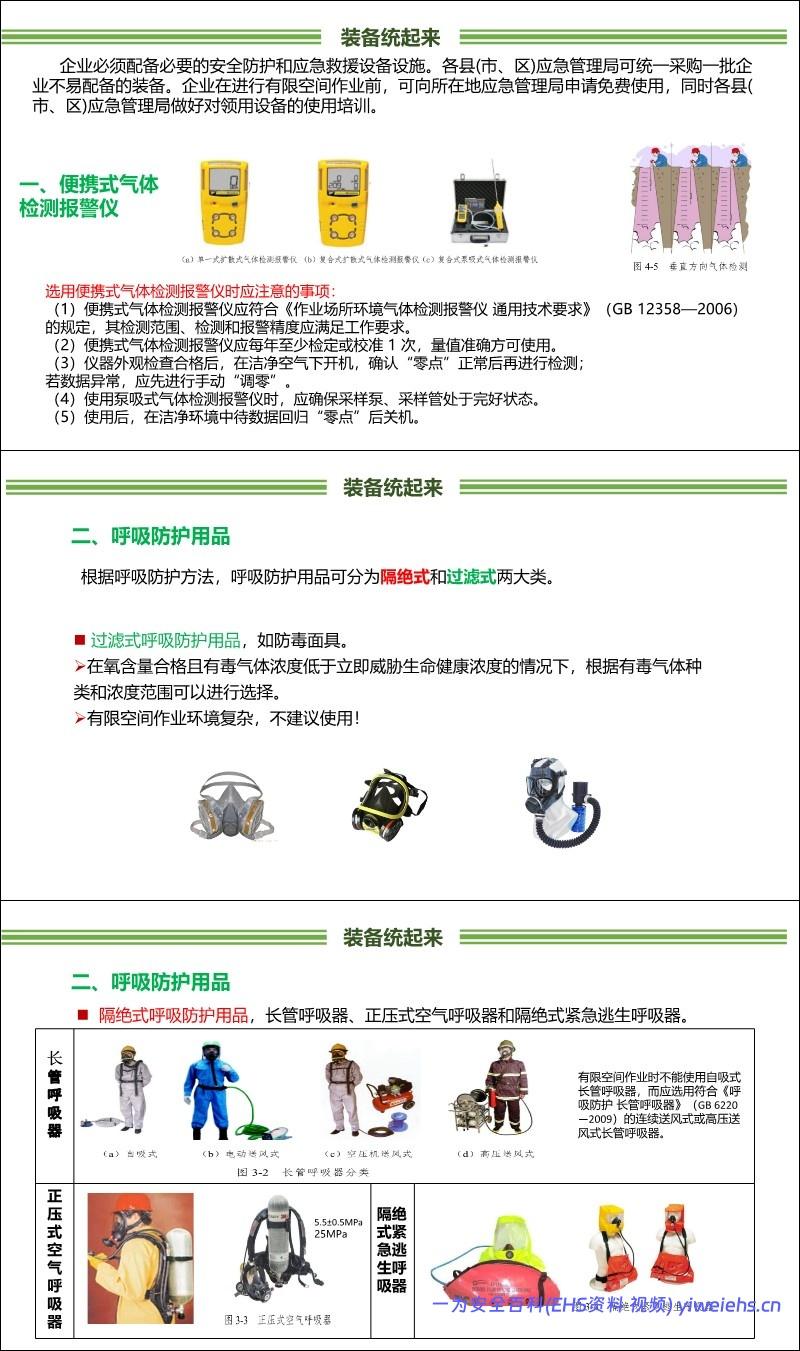 装备统起来:配备并统一管理气体检测仪、呼吸防护用品(推荐隔绝式,如正压式空气呼吸器、连续送风长管呼吸器,不建议使用过滤式)、坠落防护装备(三脚架、安全带)、防爆工具及通风照明设备。