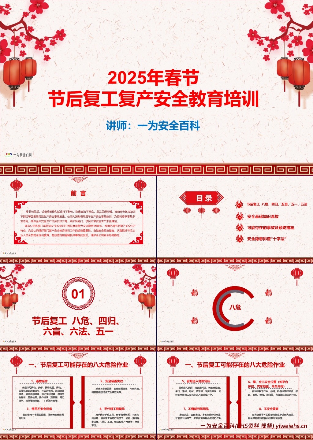 【PPT】2025年春节节后复工复产安全教育培训课件内容介绍: