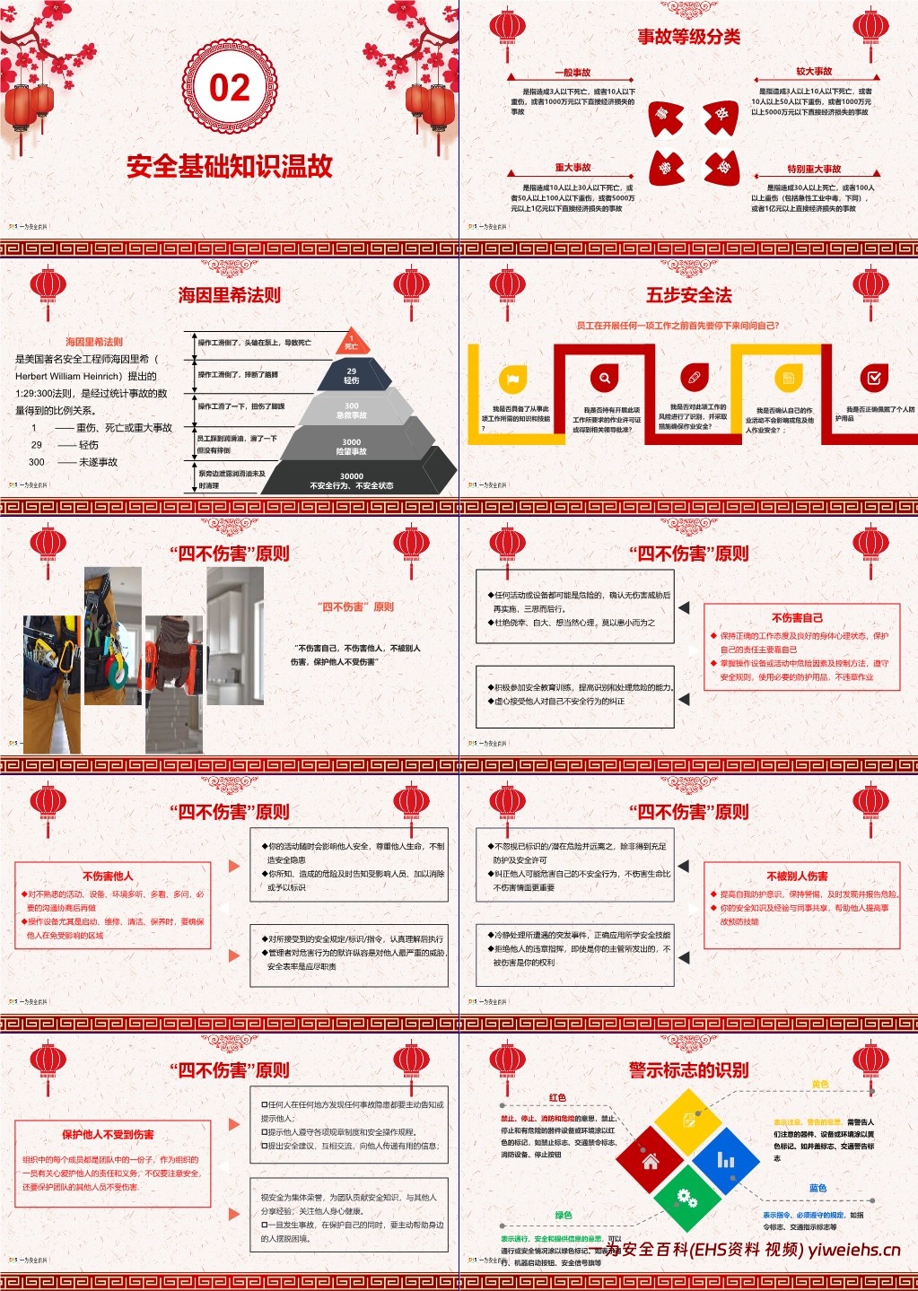 海因里希法则:揭示事故比例关系(1 起重伤 / 死亡事故对应 29 起轻伤、300 起未遂事故),强调隐患预防的重要性。