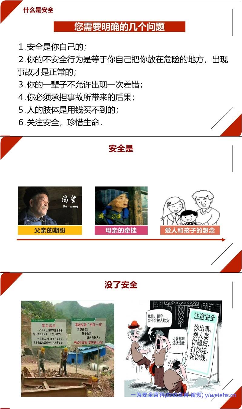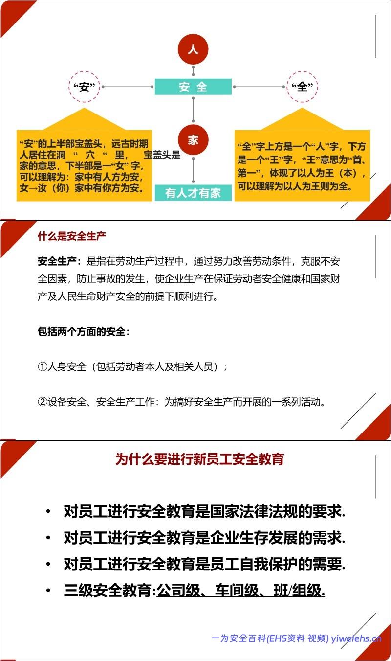 安全定义:解释“安”(家中有人才为安)和“全”(以人为王/本则为全)的字面含义,强调以人为本。