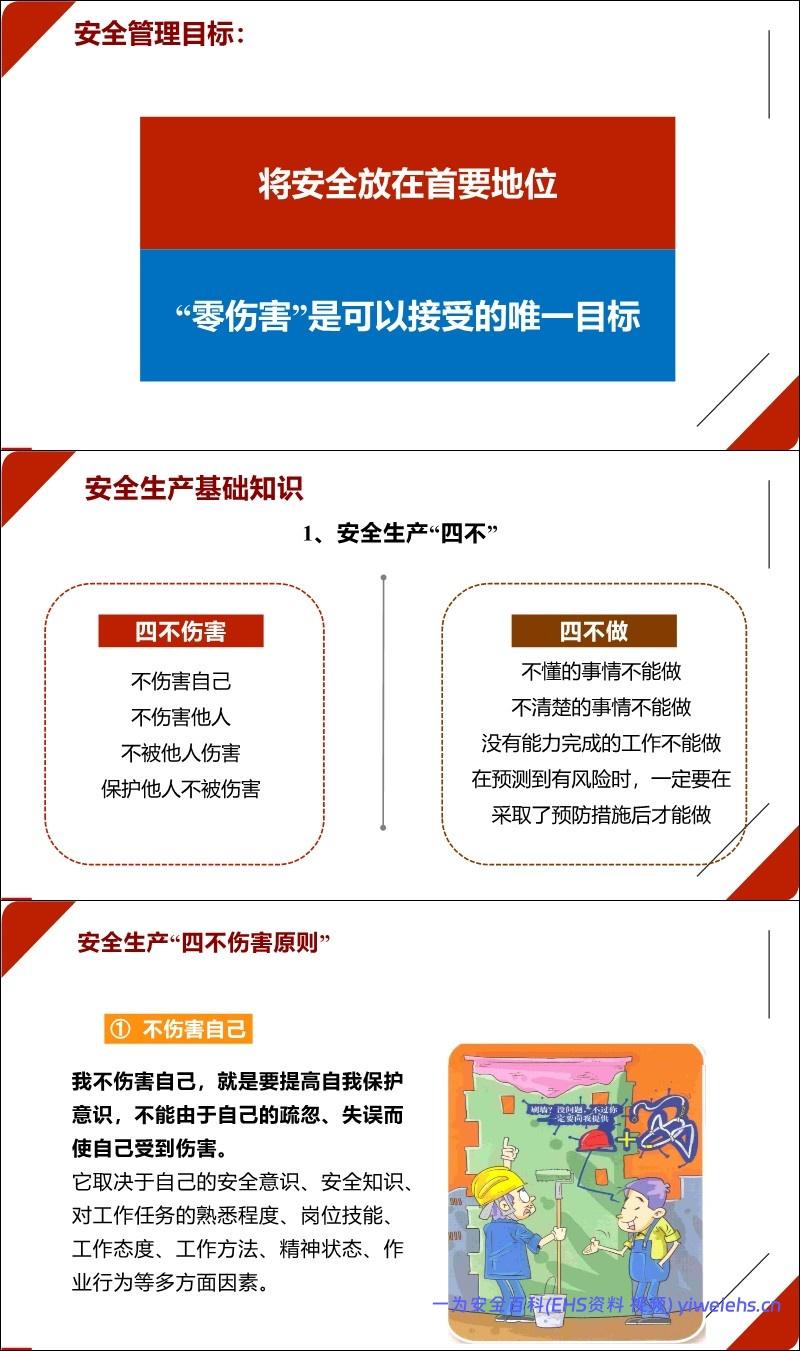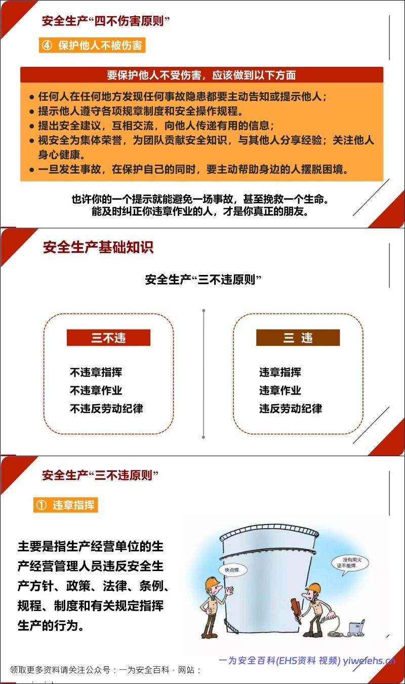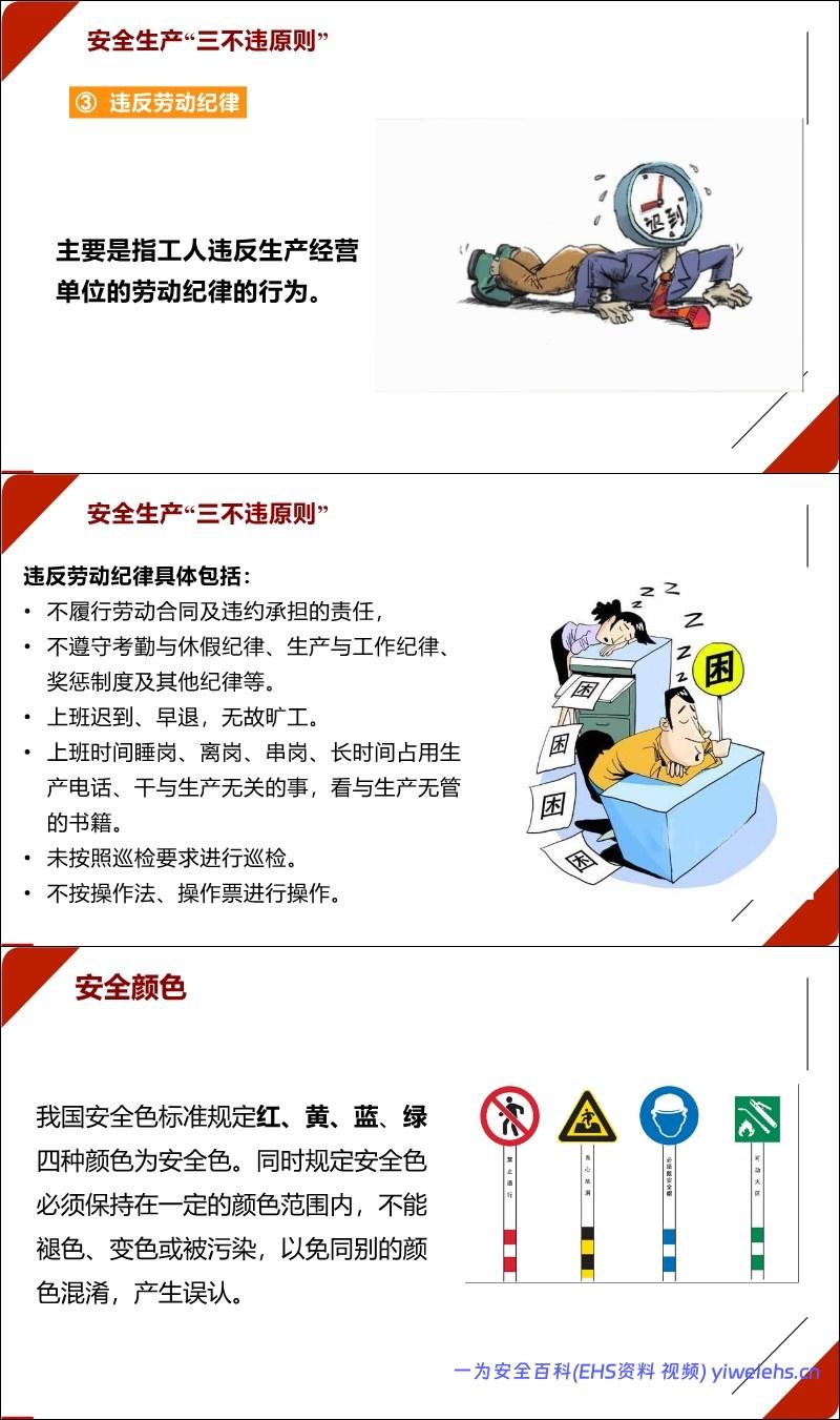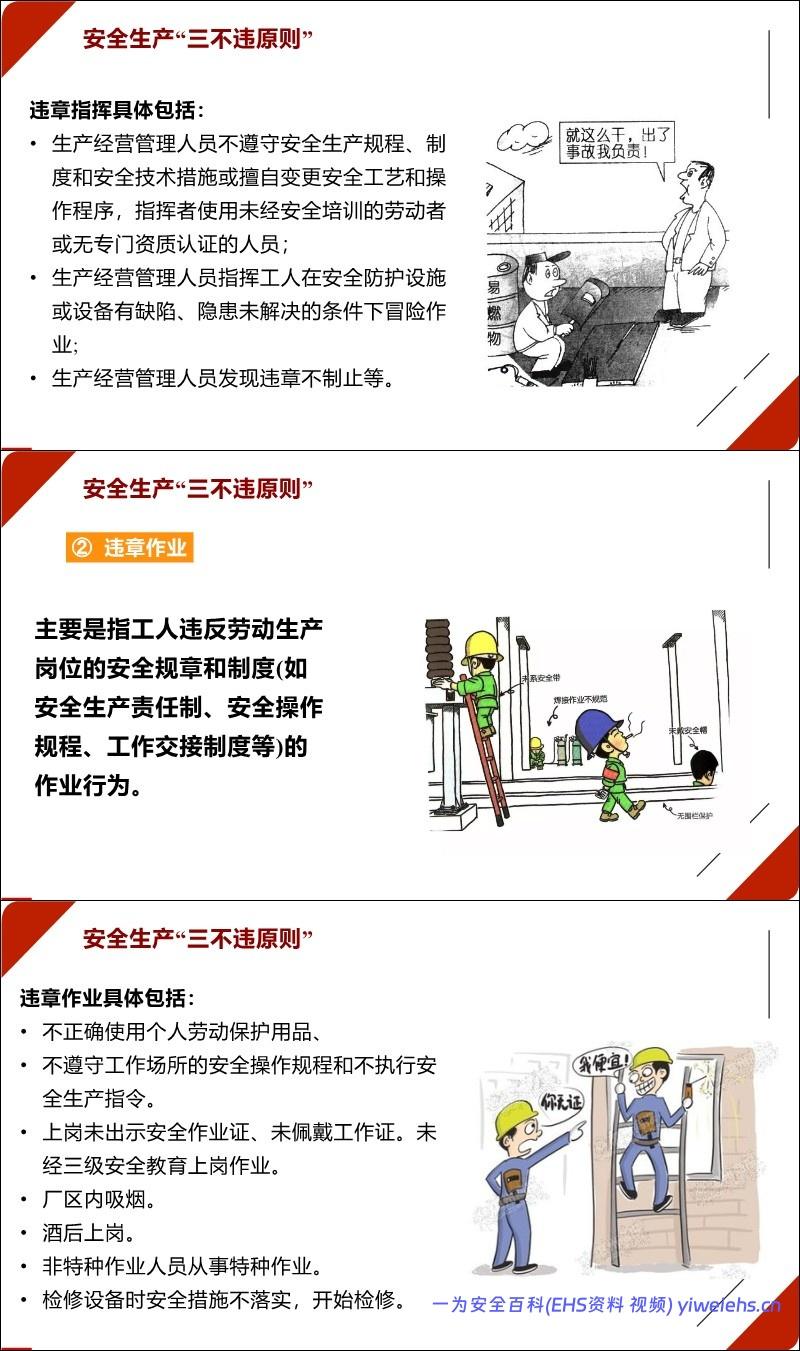 “三不违”原则:不违章指挥、不违章作业、不违反劳动纪律,并详细列举了各类违规行为的具体表现。