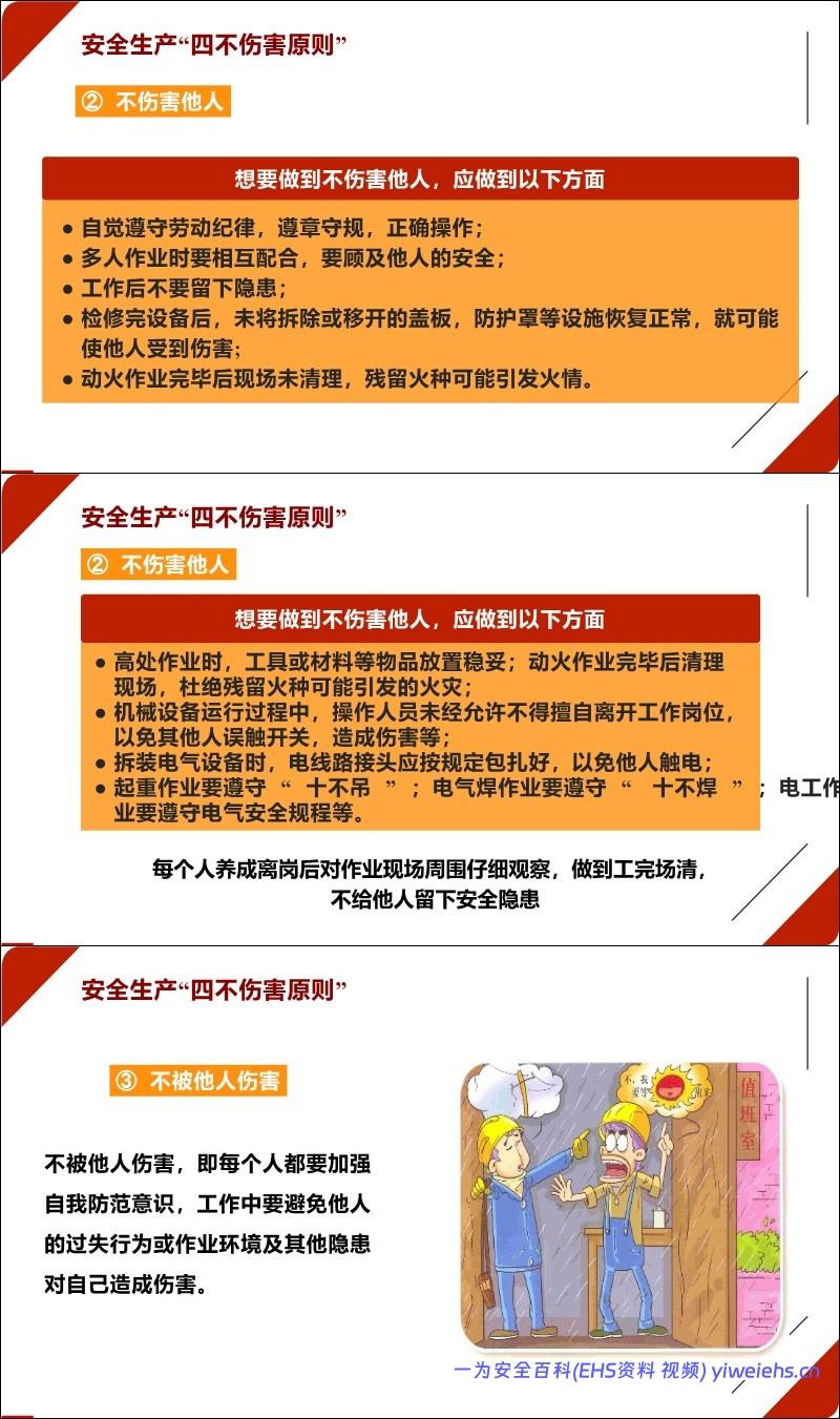 不伤害他人(遵守规程,不留隐患)。