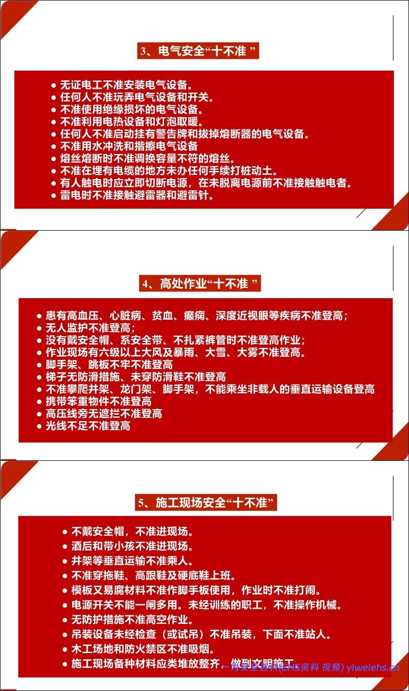 施工现场安全“十不准”(如不戴安全帽不进现场、酒后不进现场等)。