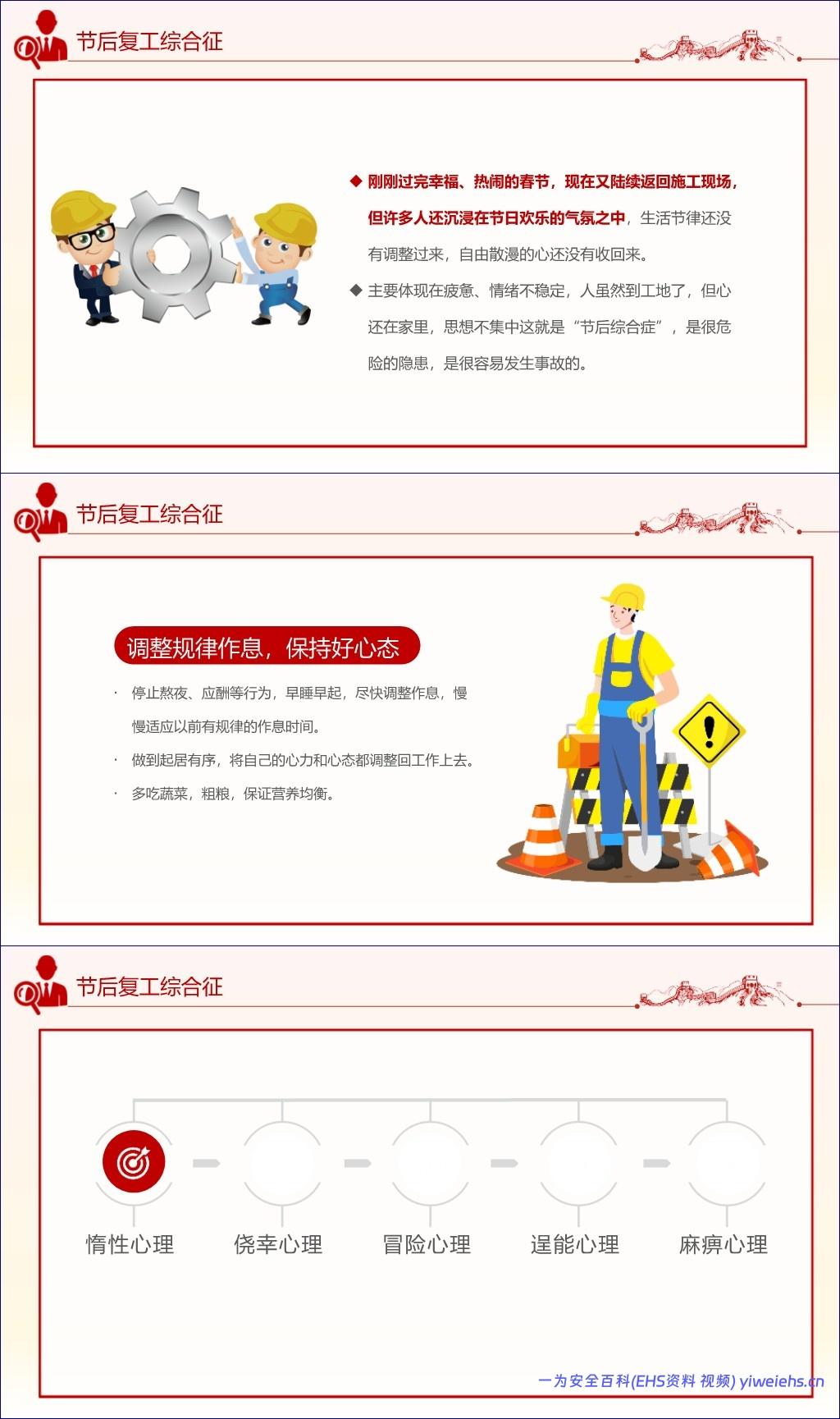 定义与表现: 指出员工在春节假期后返回工作岗位时,普遍存在生活节律未调整、思想不集中、疲惫、情绪不稳定等“节后综合症”现象,这是极大的安全隐患。