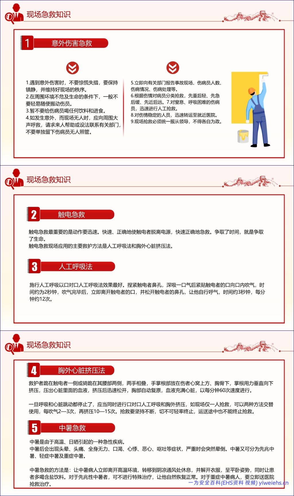 触电急救: 迅速脱离电源,采用人工呼吸法(口对口)和胸外心脏挤压法,强调动作迅速和坚持不断。