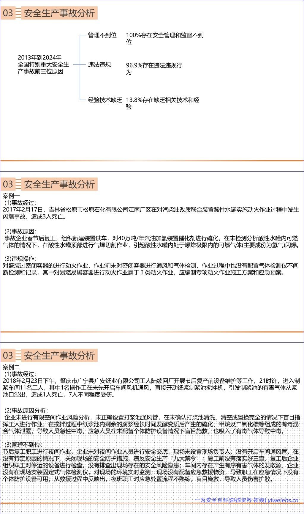 事故原因:分析了人的因素(违章操作、指挥、违反纪律)和物的因素(设备缺陷、防护缺失)。特别指出了麻痹侥幸、懒惰蛮干等心理因素。