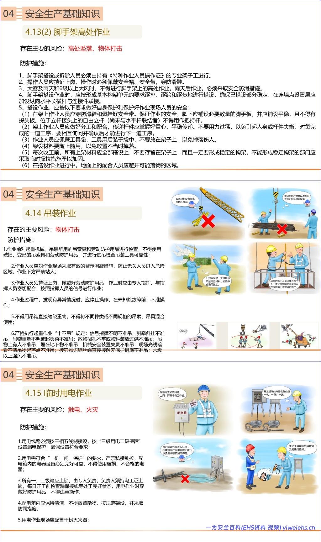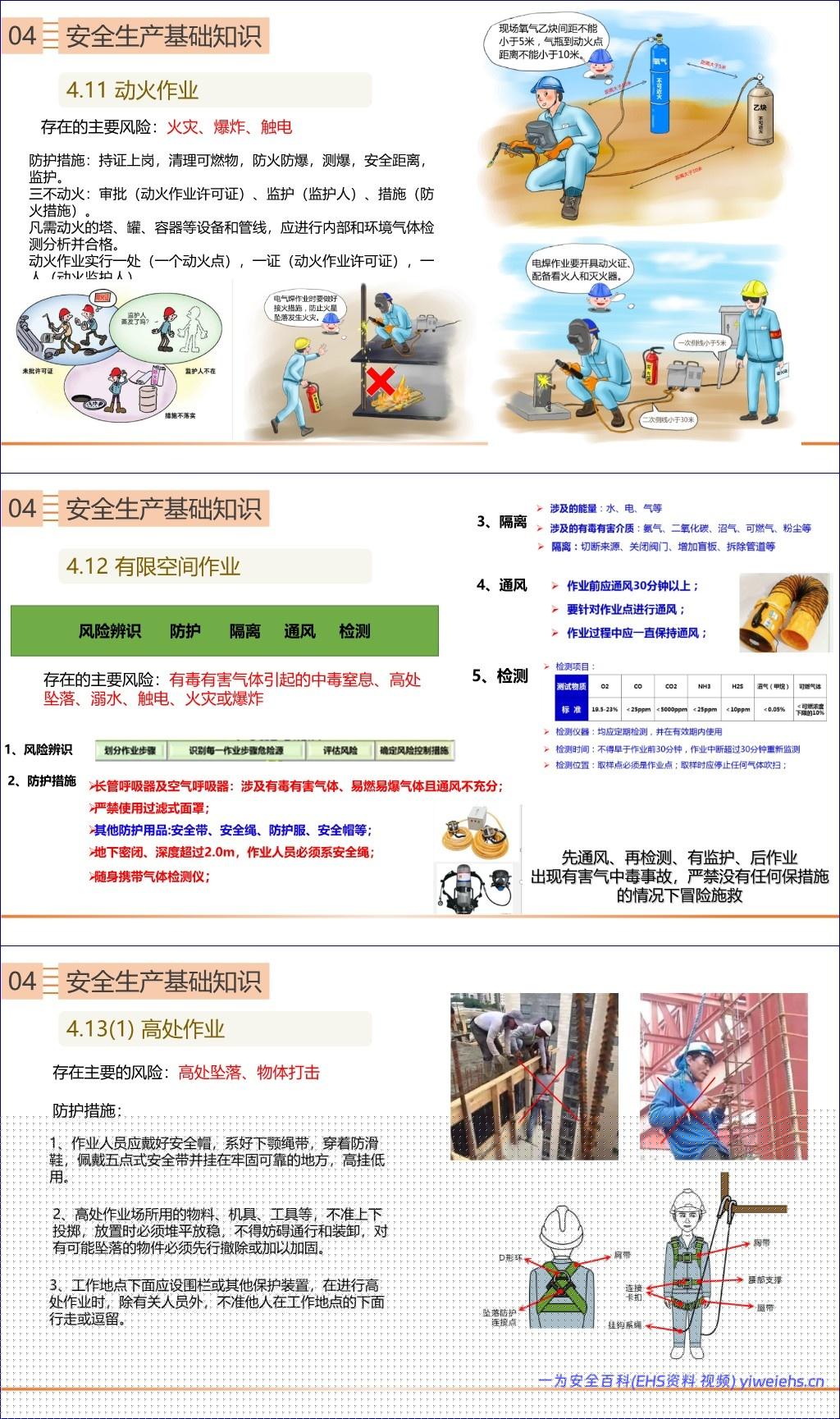 危险作业管控:详细列出了动火、有限空间、高处、吊装、临时用电、电房作业、危化品泄漏及机械伤害的风险点及具体防范措施。