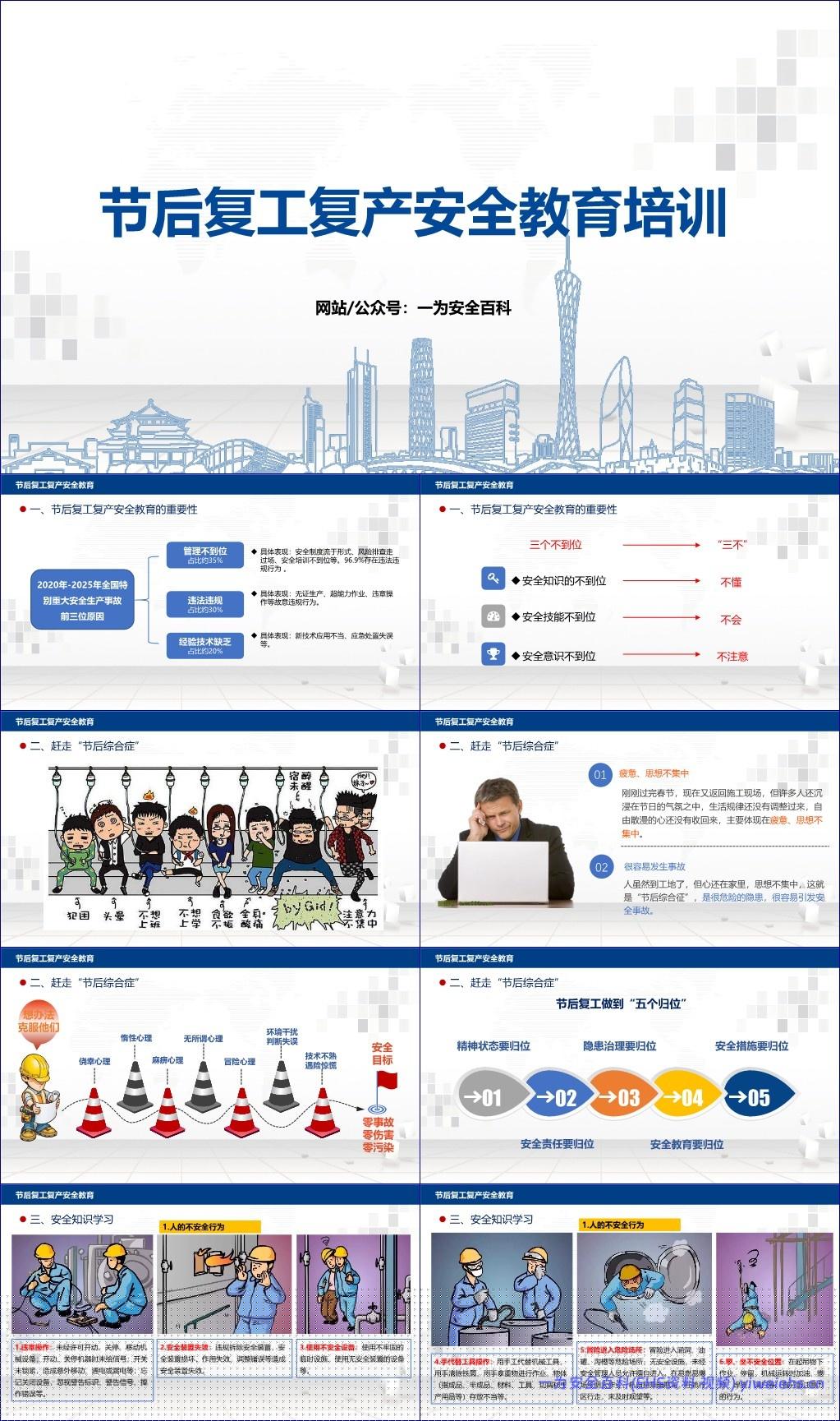 【PPT】节后复工复产安全培训教育培训-课件内容介绍: