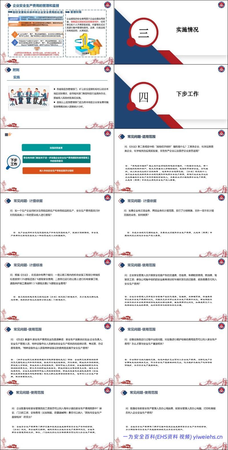 文档最后针对适用范围(如“其他经济组织”定义)、计提依据(混业经营、内部互供)、使用范围(交通费、特种作业证费用、专职员工资等是否可列支)以及财务处理(是否需专户、集团统筹细节)等实际操作中的疑难问题进行了详细解答。