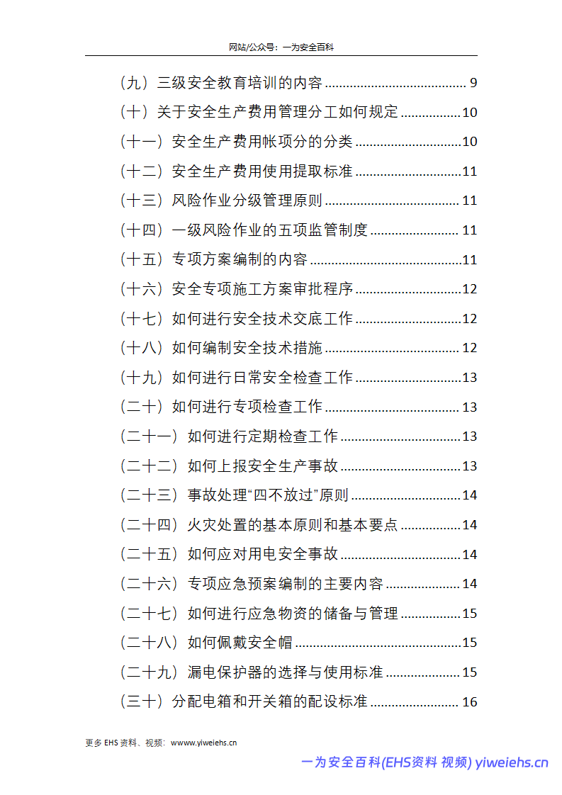 针对火灾、交通、坍塌、用电等常见事故提出了具体的预防措施。