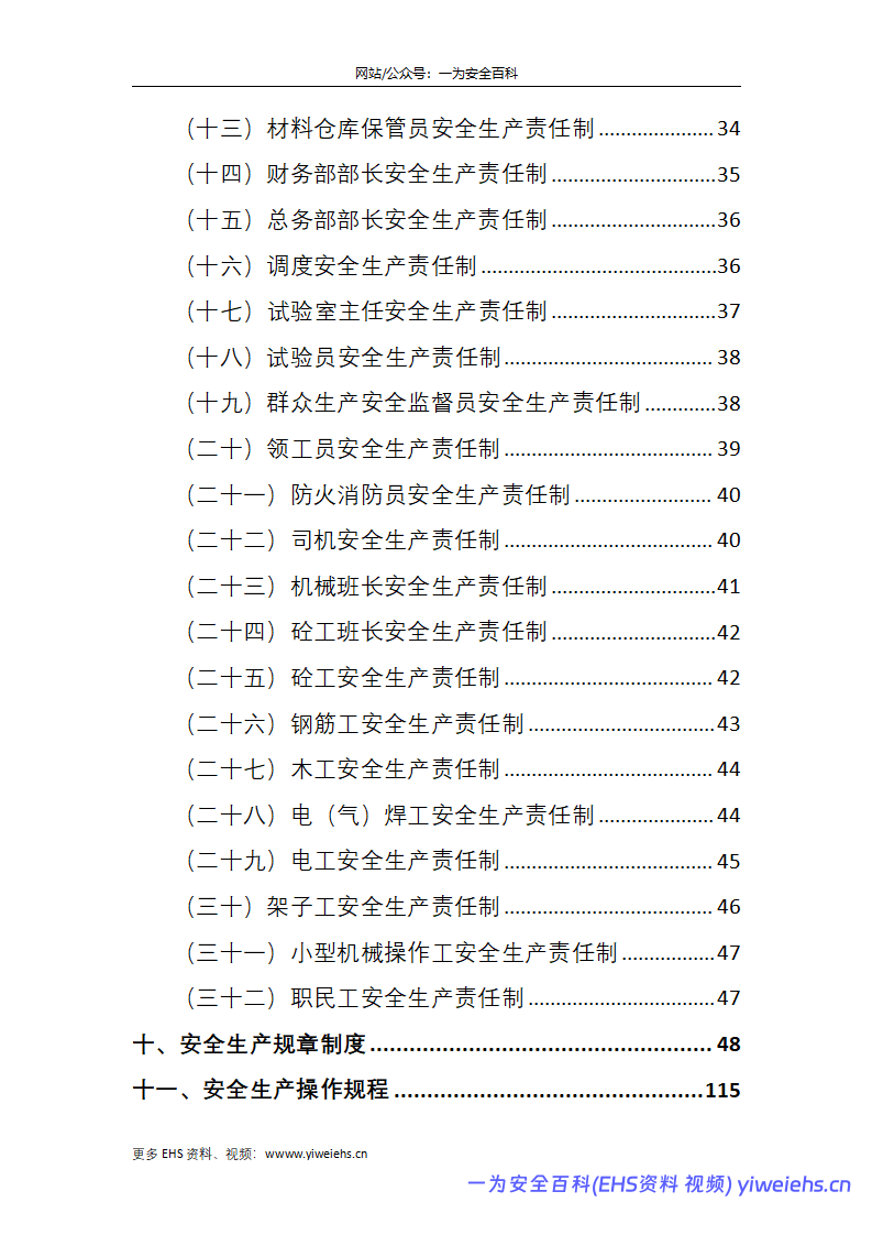 详细规定了从项目经理、书记、总工到各职能部门(安质、技术、物资、财务等)及一线班组(钢筋工、电工、架子工等)共32个岗位的安全生产责任制,实现了全员覆盖。