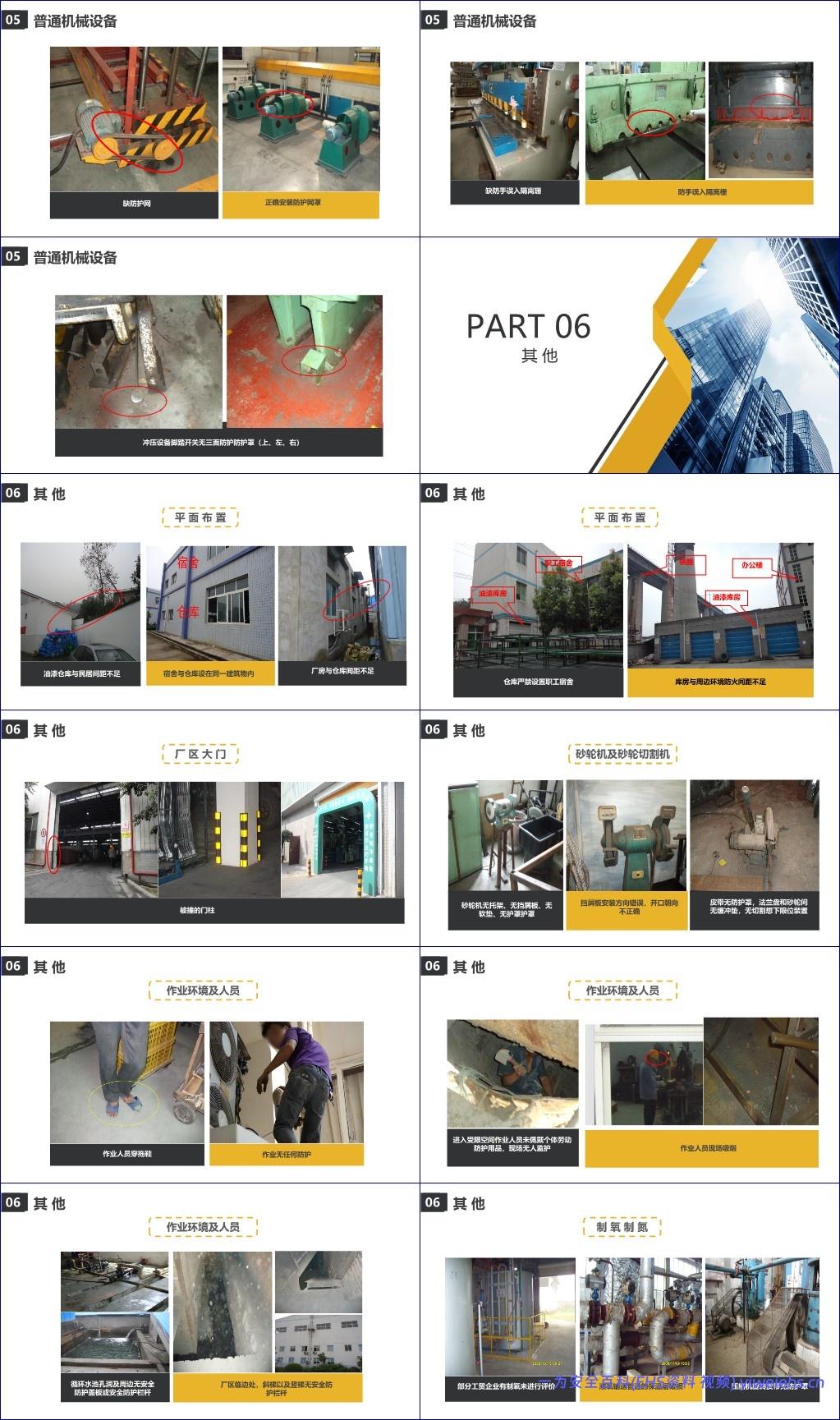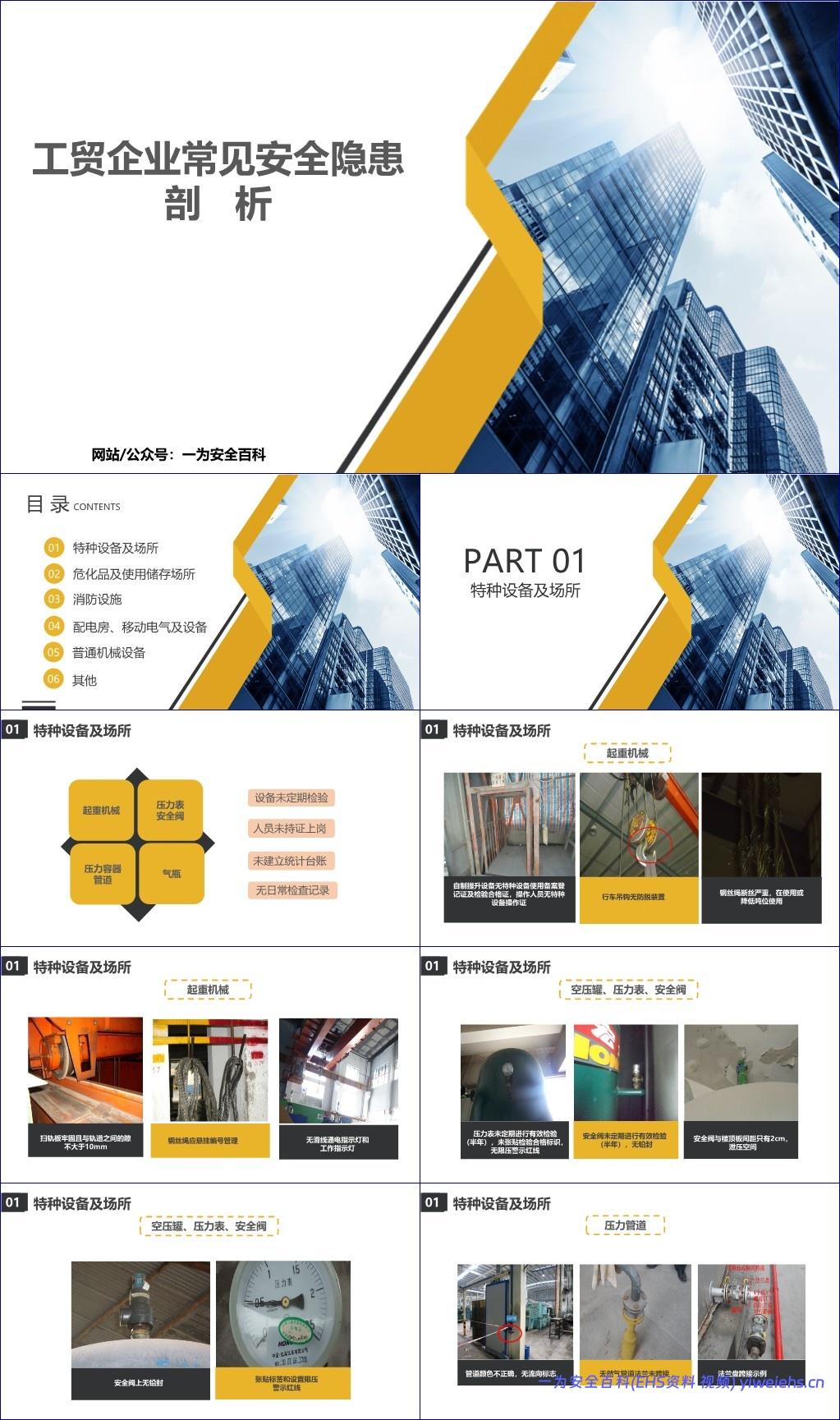 该文档《工贸企业常见安全隐患图集剖析》系统梳理了工贸企业在日常运营中常见的各类安全隐患,内容覆盖六大核心板块:特种设备及场所、危化品及使用储存场所、消防设施、配电房与电气设备、普通机械设备以及其他综合类隐患。全文通过图文并茂的方式,直观揭示了实际生产过程中容易被忽视但风险极高的问题点,并辅以法规标准(如GB/T8196-2003)和实操建议,具有较强的指导性和警示意义。