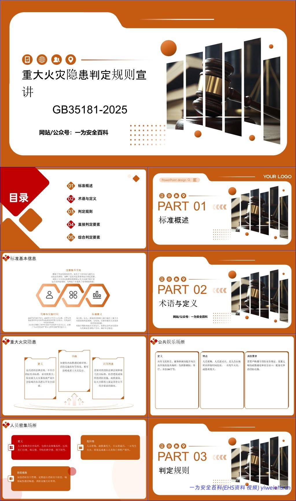 该文档《重大火灾隐患判定规则》(标准号:GB 35181-2025)是一份用于指导如何识别和判定重大火灾隐患的国家标准,将于2025年11月1日正式实施,替代2017年旧版。其核心目标是为公民、法人、其他组织及相关部门提供科学、统一的技术依据,以预防和减少火灾事故,保障人民生命财产安全和社会稳定。