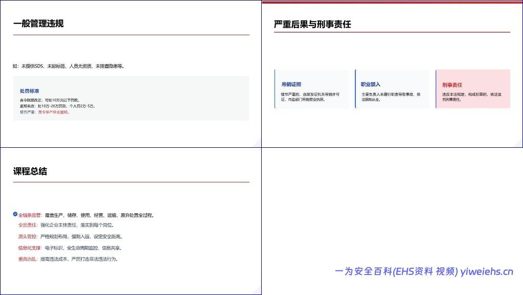 综上,《危险化学品安全法》以信息化为支撑(推行电子标识和全生命周期监控),以重典治乱为手段(大幅提高罚款额度,最高可达货值10倍,并追究刑事责任),构建起覆盖“生产、储存、使用、经营、运输、废弃”全过程的严密法治体系。企业务必在2026年5月1日前完成合规整改,否则将面临严厉处罚。