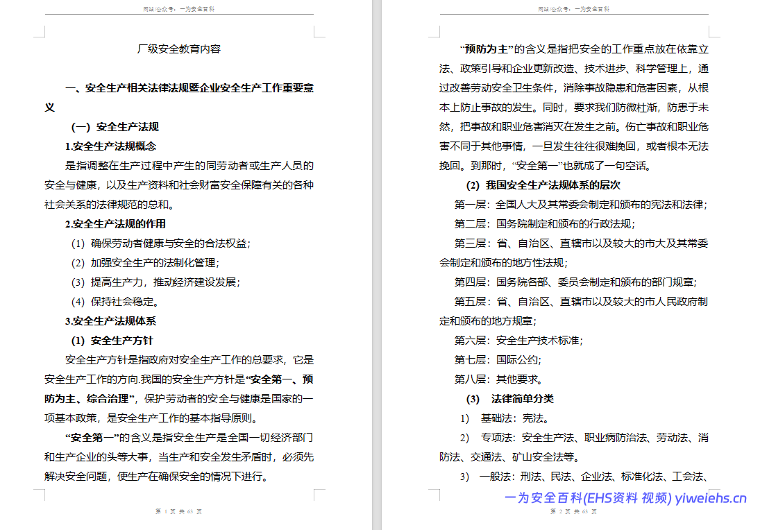 《新员工厂级安全教育内容讲义讲稿知识要点》是一份系统、全面、结构清晰的企业安全培训核心教材,旨在为新入职员工提供必要的安全生产法律法规认知、企业安全制度理解以及基本安全技能掌握。该文档严格遵循国家关于“三级安全教育”(即厂级、车间级、班组级)的法定要求,重点聚焦于厂级安全教育层面,内容涵盖面广、实操性强,是企业落实安全生产主体责任、保障员工生命健康权益的重要抓手。
